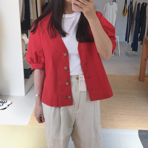 ハリのあるコットン素材で立体感の出るブラウスです。