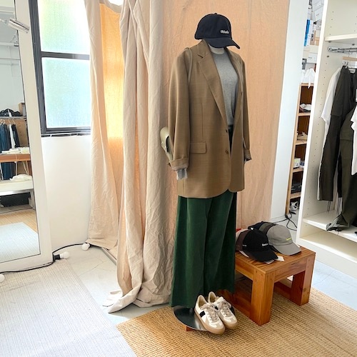 こちらも服は全てAURALEE。少し前まではジャケットは着ていないスタイルでした。笑