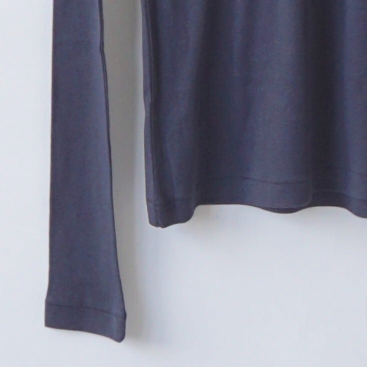 超長綿を超極細番手に紡績し、希少な編み機で最もハイゲージで編み上げたリブ素材です。