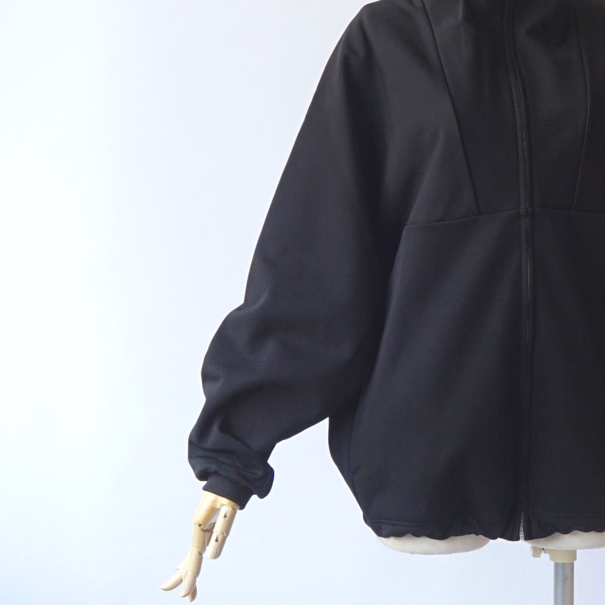 体操着などで採用されていた編み機を使用し、表面に強撚のポリエステル、裏面にはスヴィンコットンを使用したダブルフェイス生地となっています。