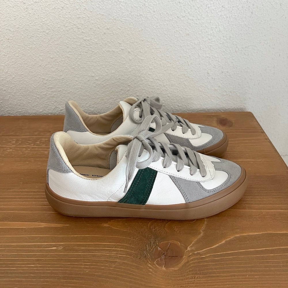 1980年代にドイツ軍のトレーニングシューズとして採用された「ジャーマントレーナー」をベースに、軍用シューズ製造の老舗ファクトリーと協力し現代的に再現したREPRODUCTION OF FOUNDとのコラボスニーカー。