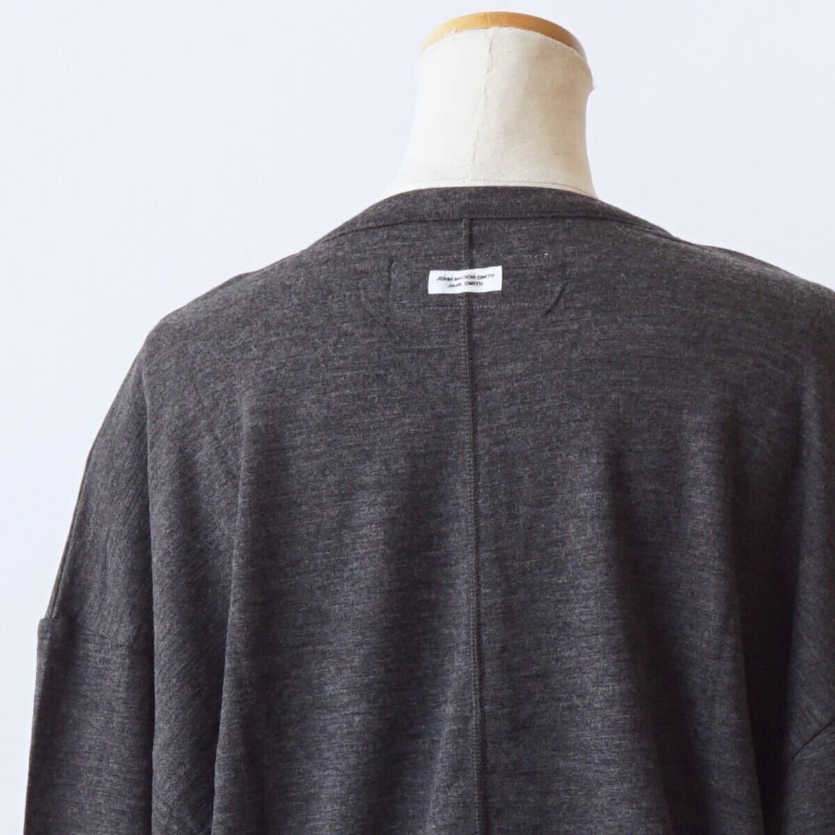 super120's 17.5マイクロンの繊細ね糸を使用し、ローゲージのフライスを編む事により抜群のタッチとなっております。