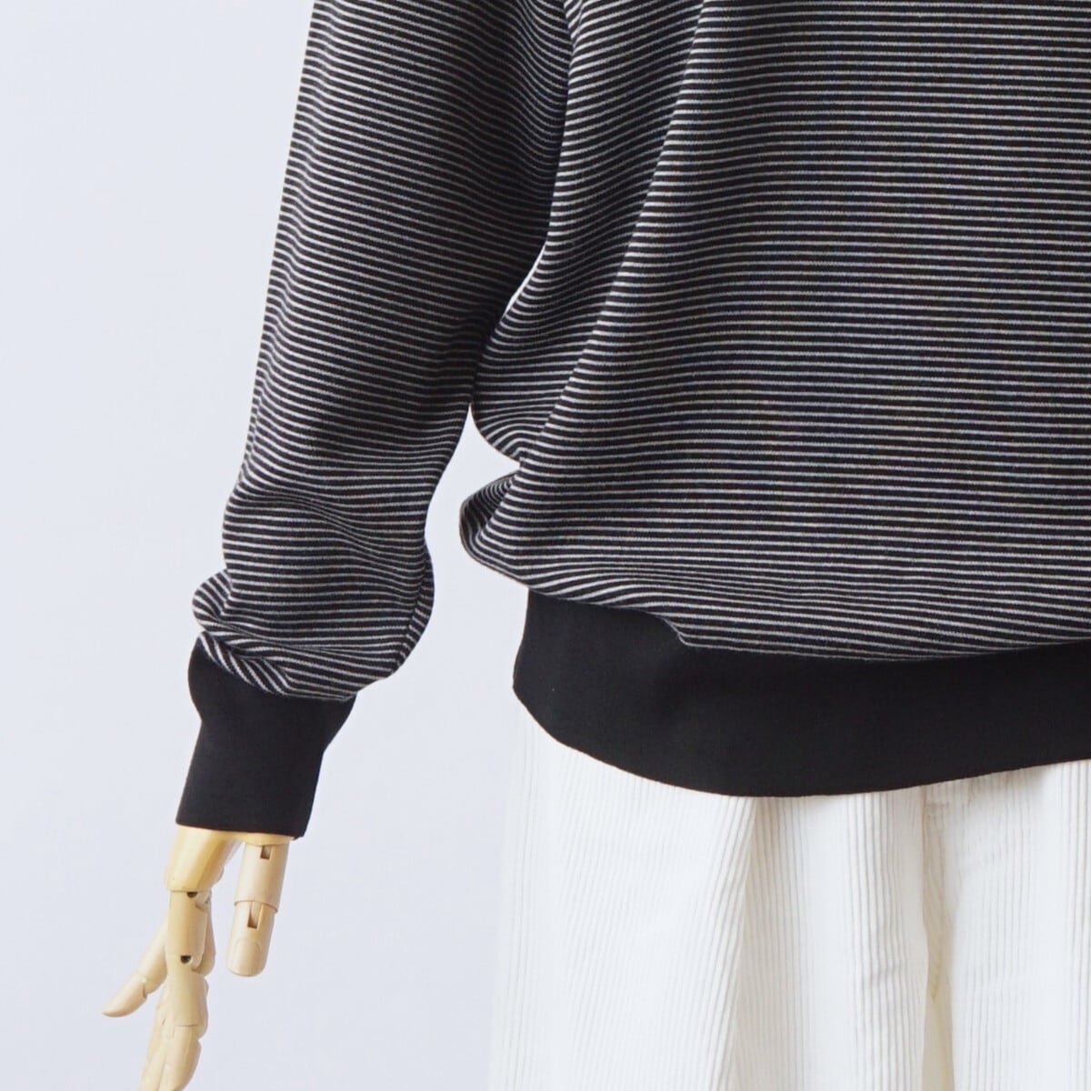 世界最高峰のハイゲージ編み機で極細番手のウール糸をスムース組織で時間をかけて編み立てました。