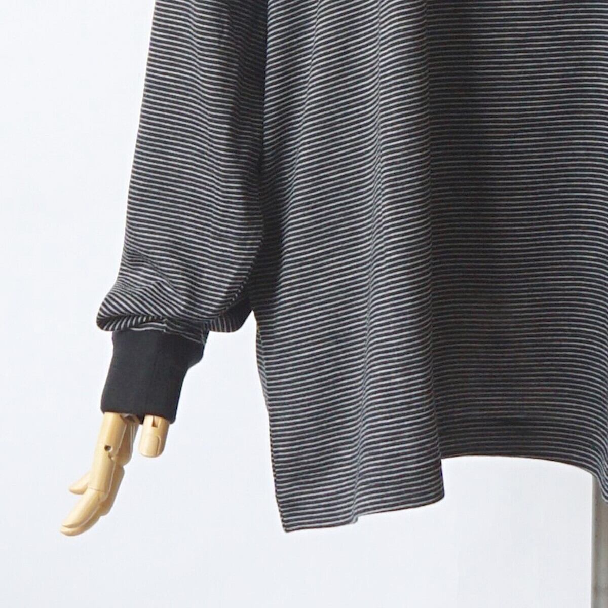 良質なメリノウールで編み立てた目面が均一できれいな細ボーダーの天竺。