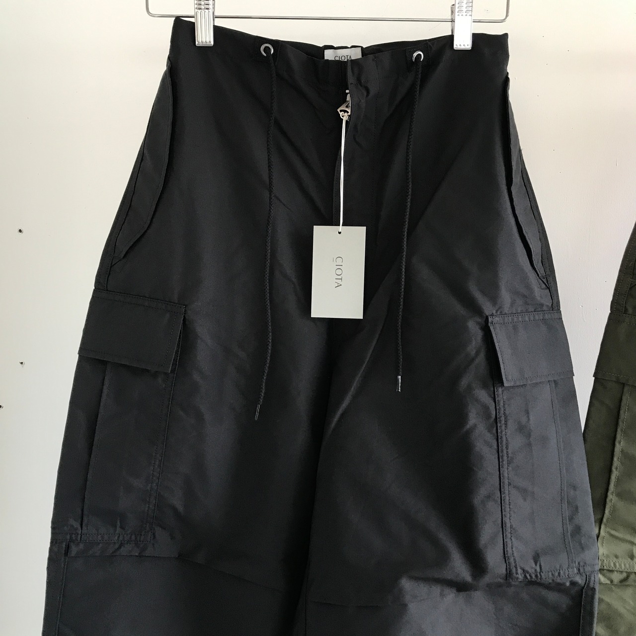 ワイドな極太シルエットでウエストと裾のドローコードを絞って色々なシルエットが可能なアイテム。