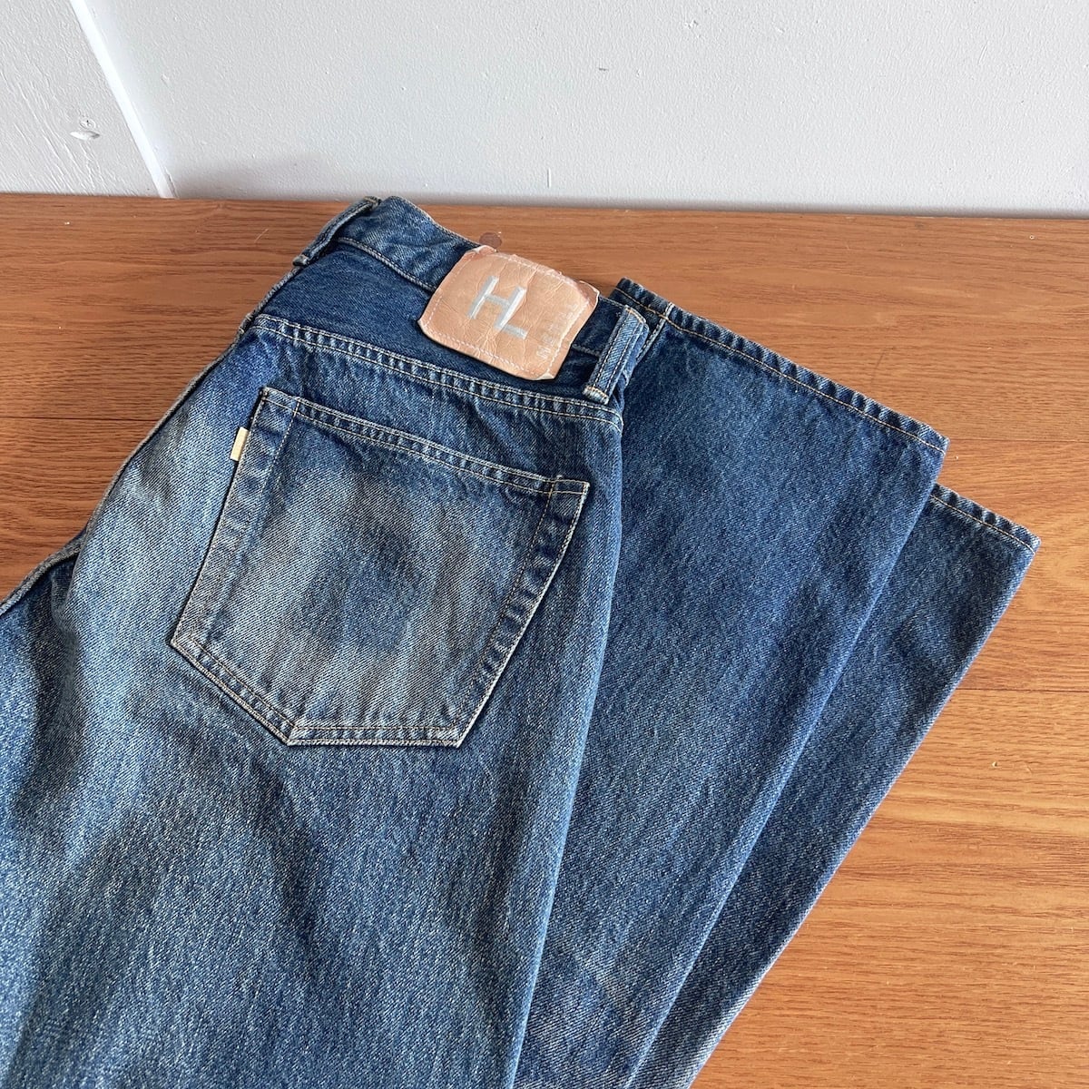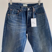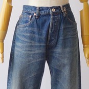 ヴィンテージ加工が施された少しテーパードのかかったすっきりとした上品さのあるシルエットの5ポケットデニムパンツ。