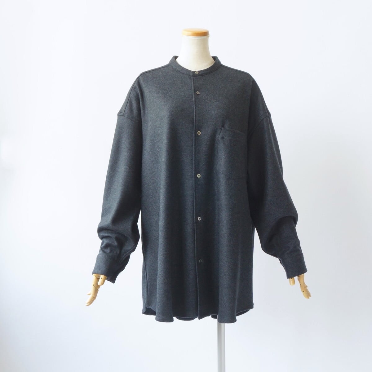 上質なウールスムースを高圧でミルド加工し、フランネルのような表情に仕上げたレギュラーカラーシャツ。