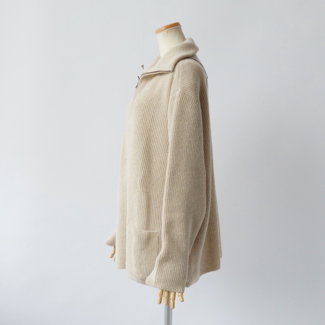 ヤクの糸にウールカシミヤの糸を撚糸することで更に膨らみを増し、バルキーな編み地で作成したハーフジッププルオーバー。