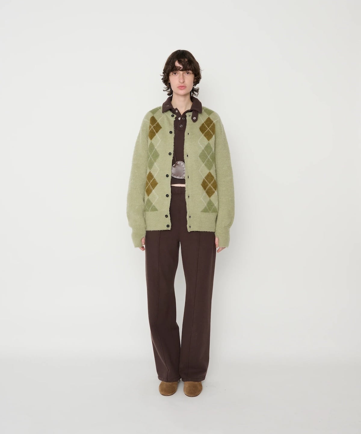 7G機械編みのダブルジャガードでオリジナルのアーガイル柄を再現しました。