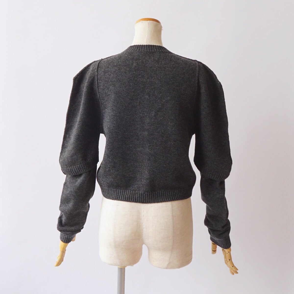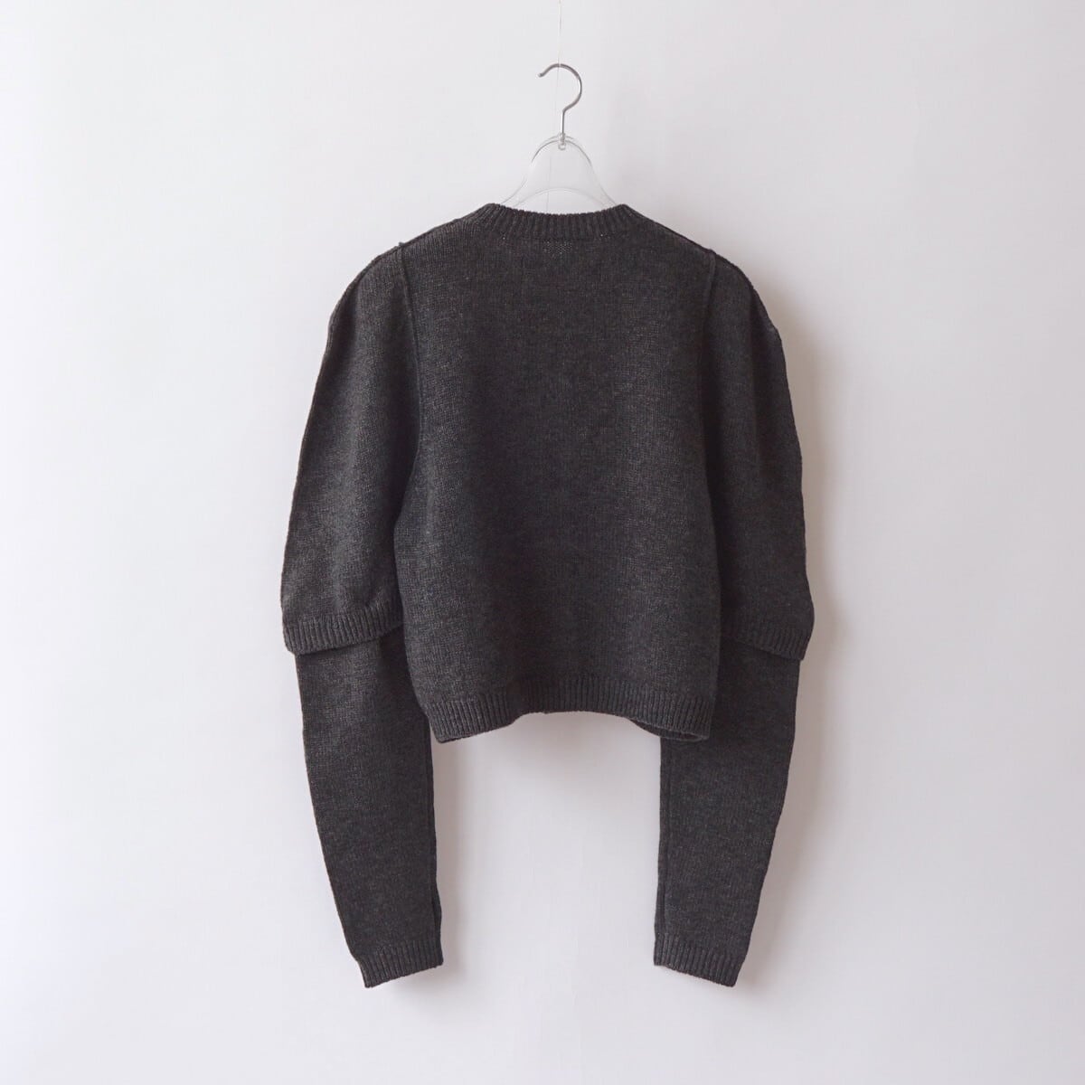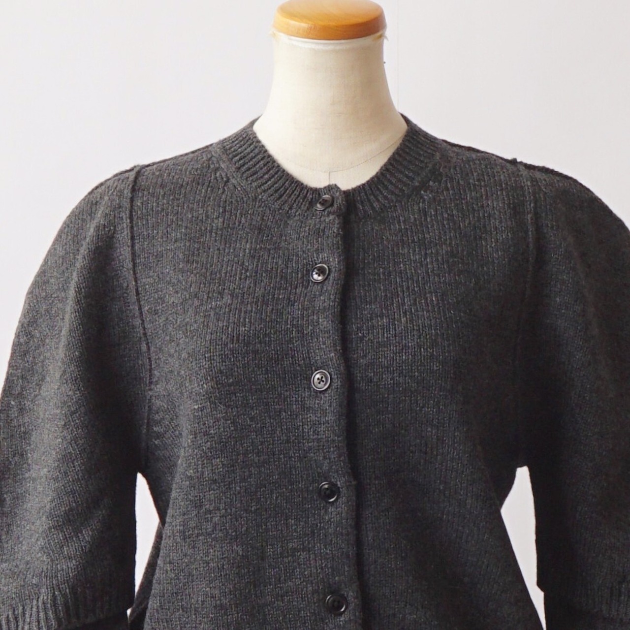 ボタンはオリジナル水牛ボタンを使用。袖がボタンで着脱可能になっており、半袖ニットとしても着れます。