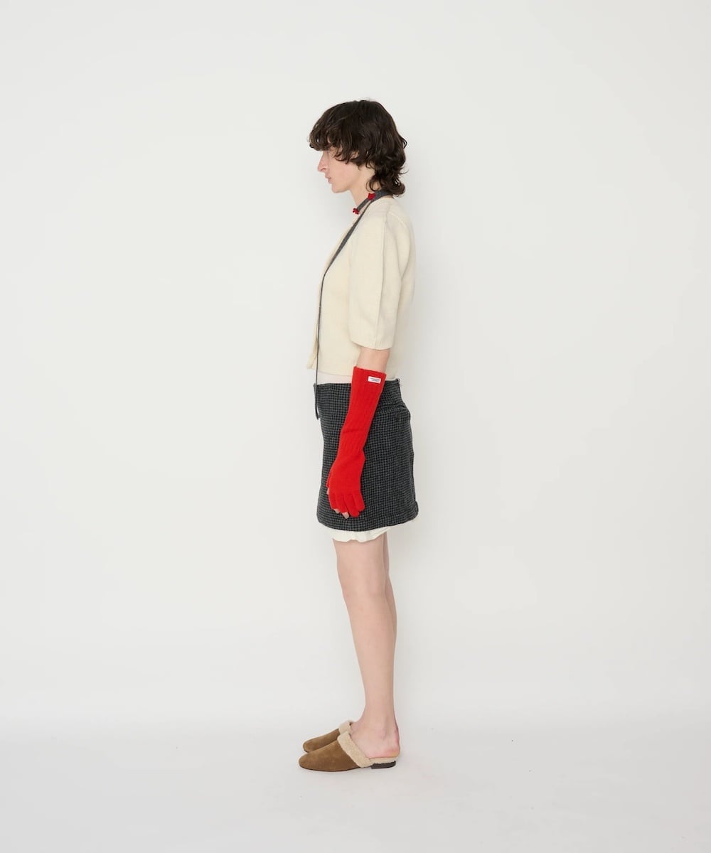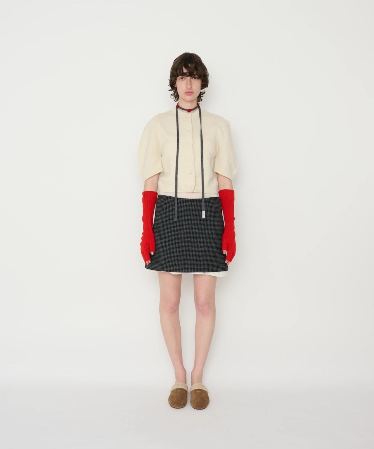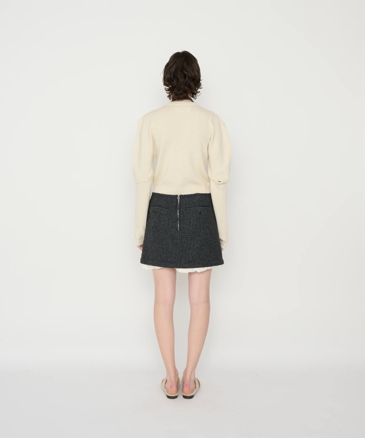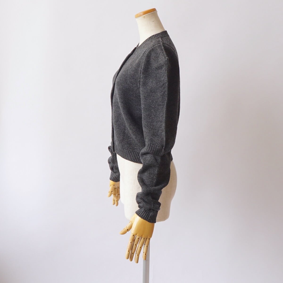 ボタンはオリジナル水牛ボタンを使用。袖がボタンで着脱可能になっており、半袖ニットとしても着れます。