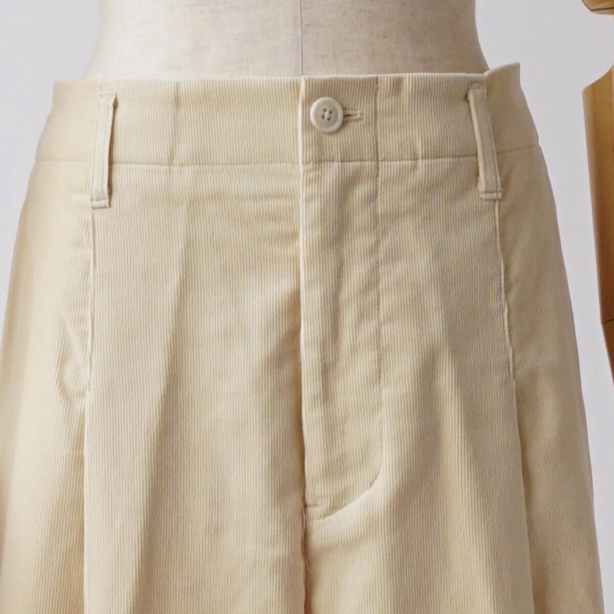 こちらは、細コールの綺麗めのコーデュロイパンツ。