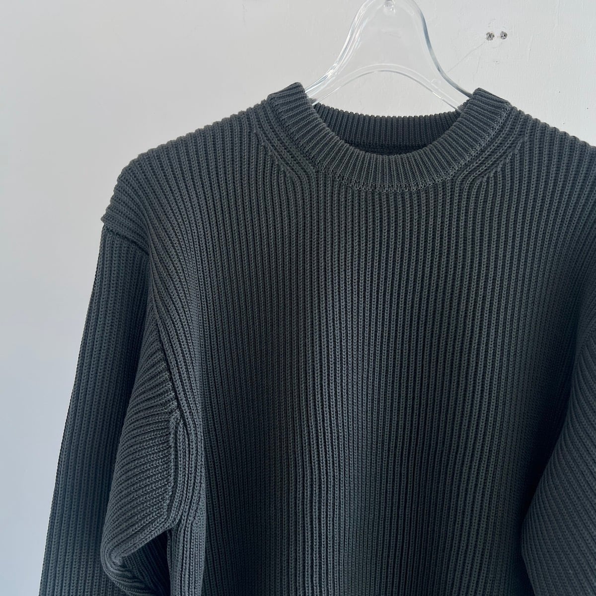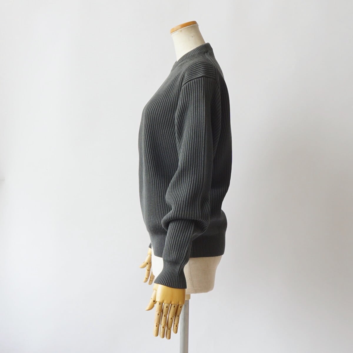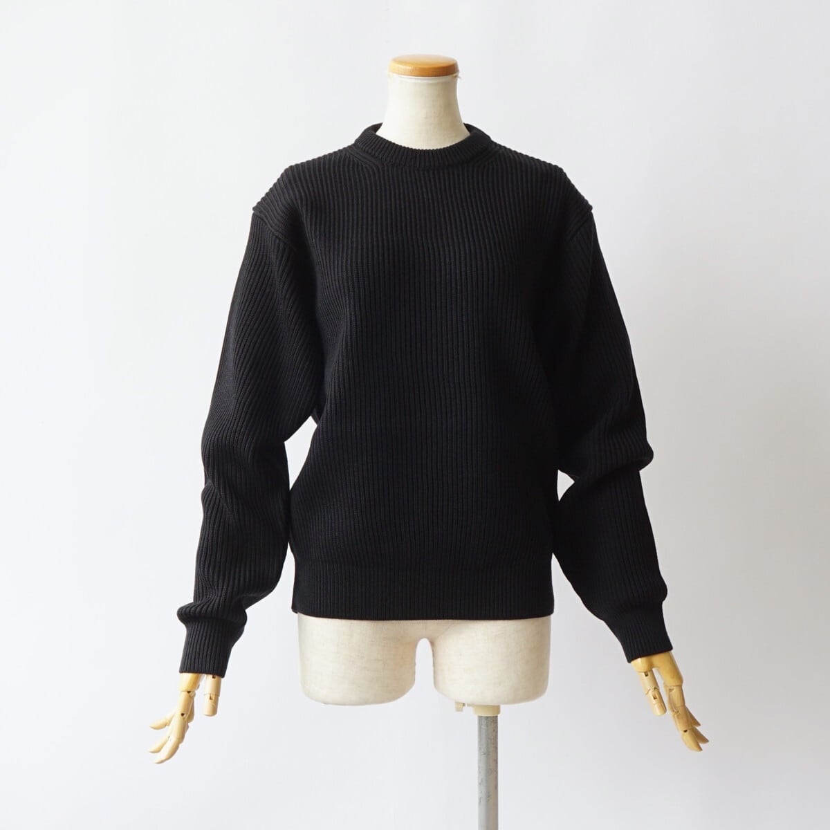 オーストラリア産の繊細なメリノウール原料を使用し、防縮加工を施した糸で編み立てた畦ニットです。
