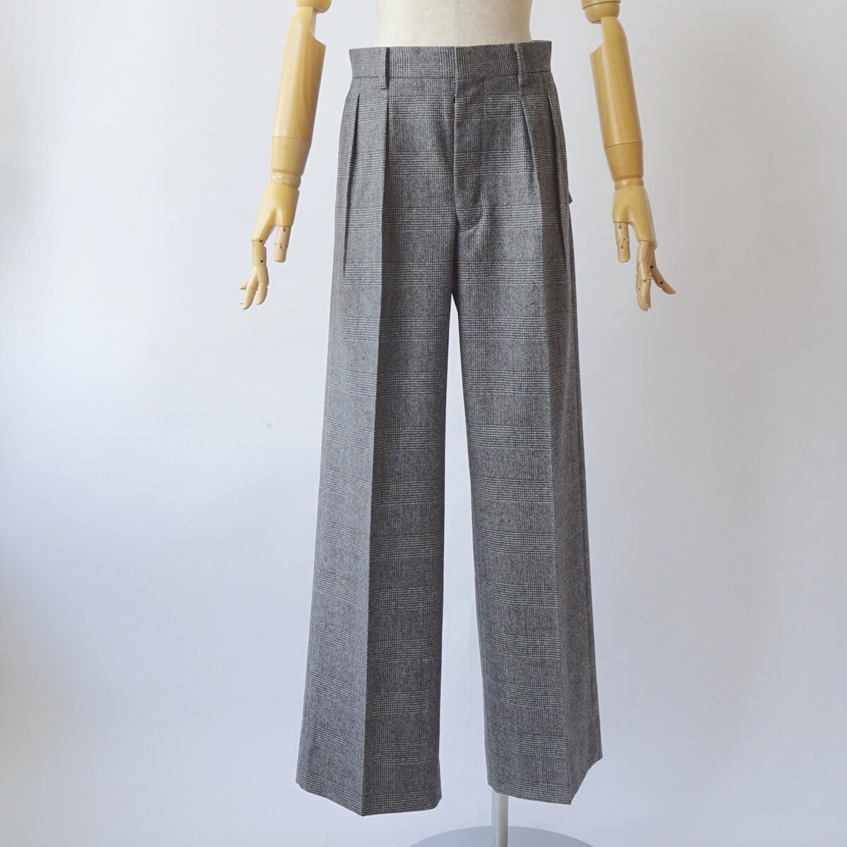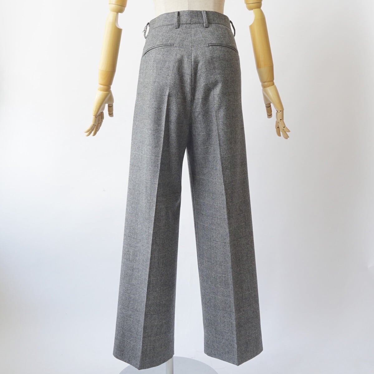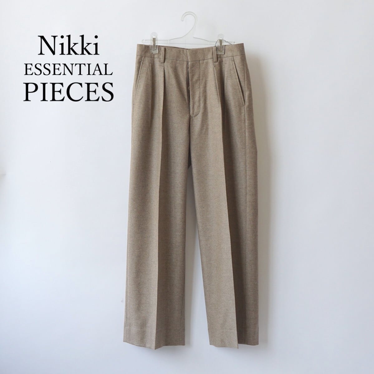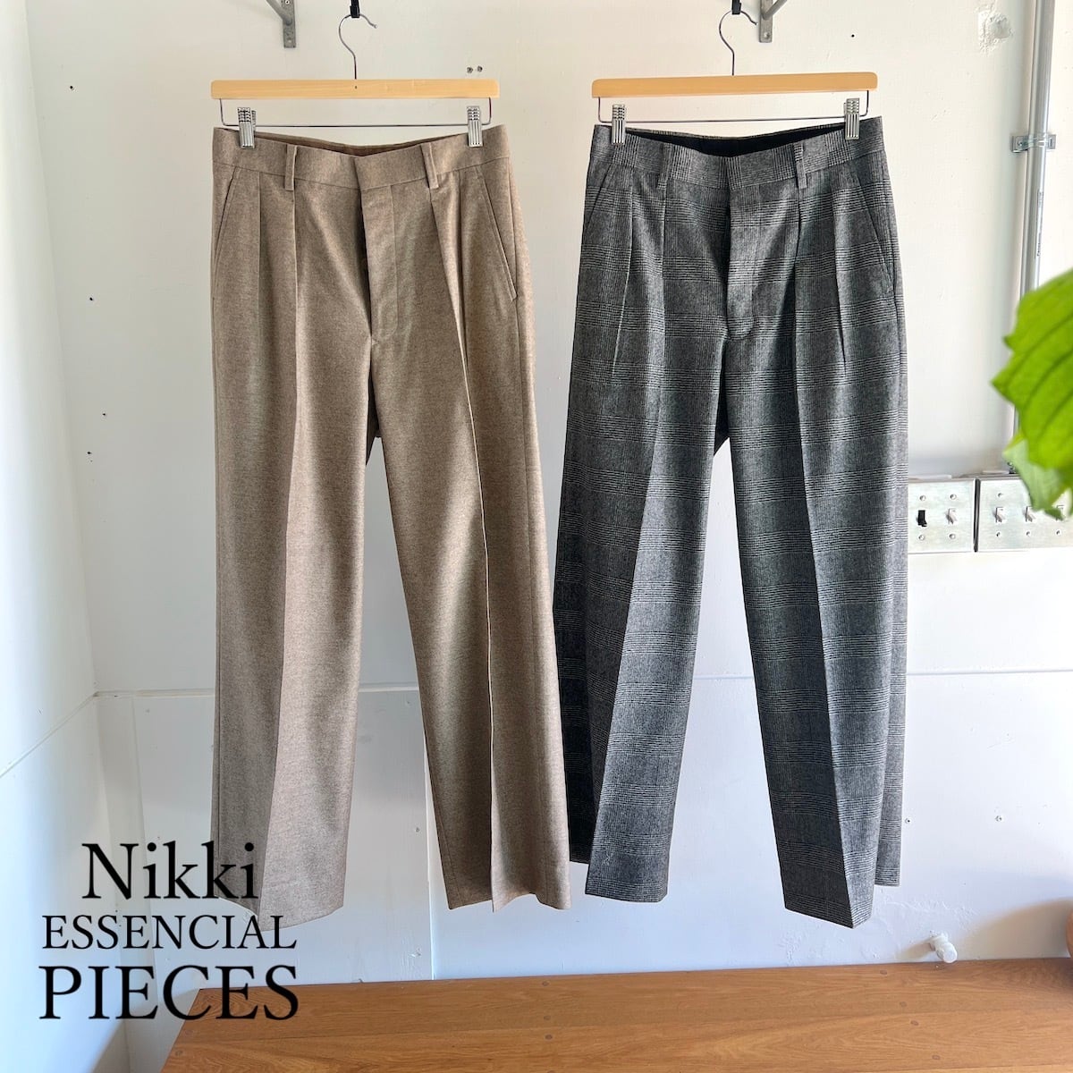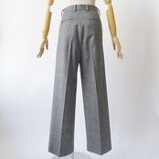 縦糸にカシミヤ混の太い糸を高密度に打ち込む事で適度なハリとコシがありながらもカシミヤのウォーム感と光沢を感じるシャープなフラノ素材を採用した2タックテーパードシルエットのトラウザー。