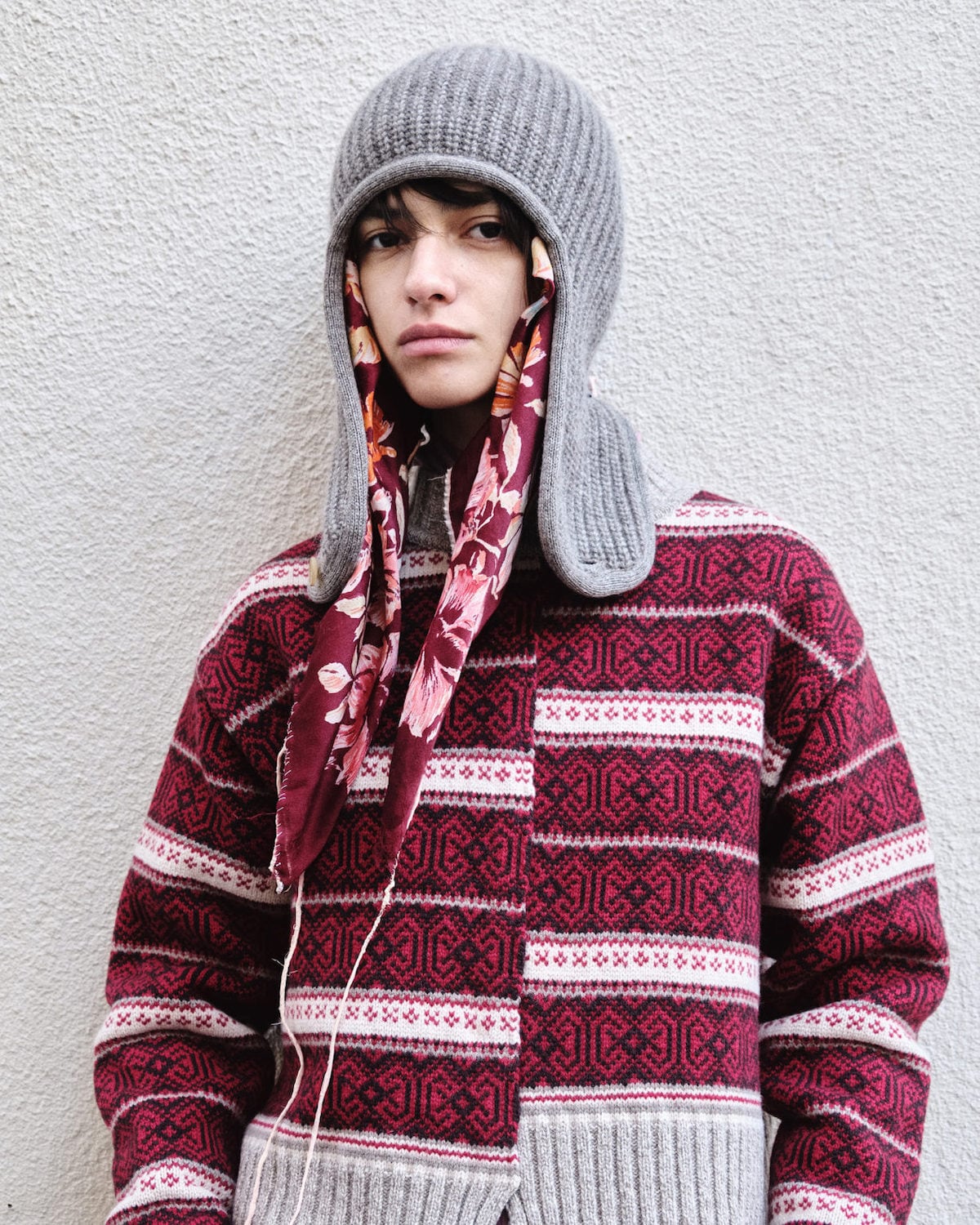ボタンが付いていて耳隠しが邪魔な際には上でまとめてニットキャップ風にも出来ます。