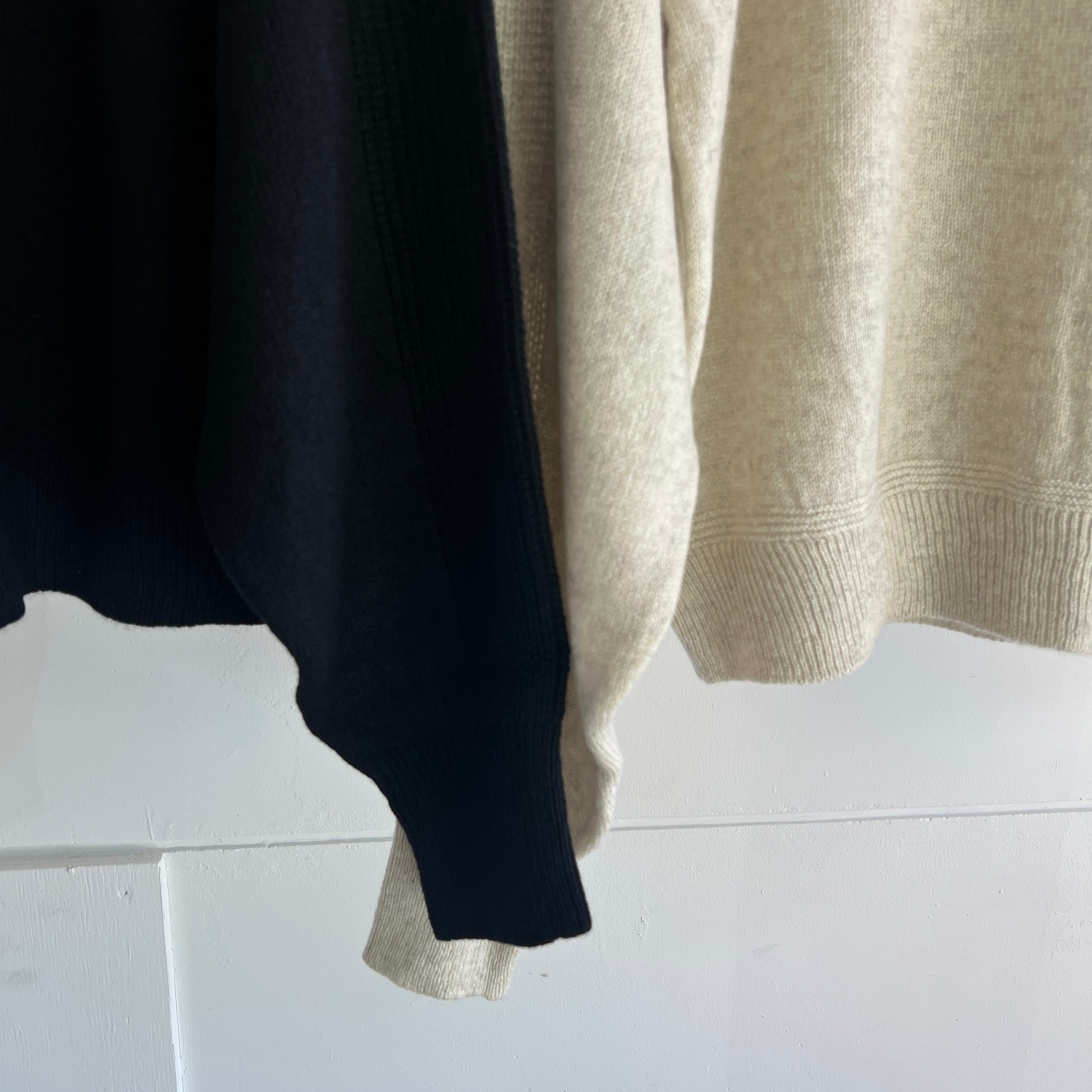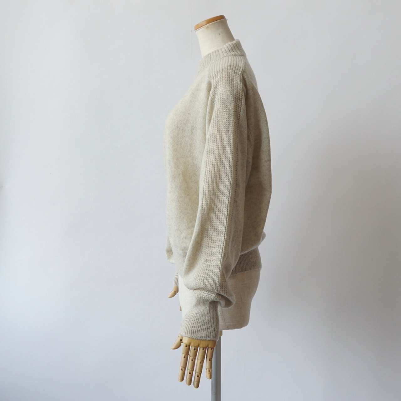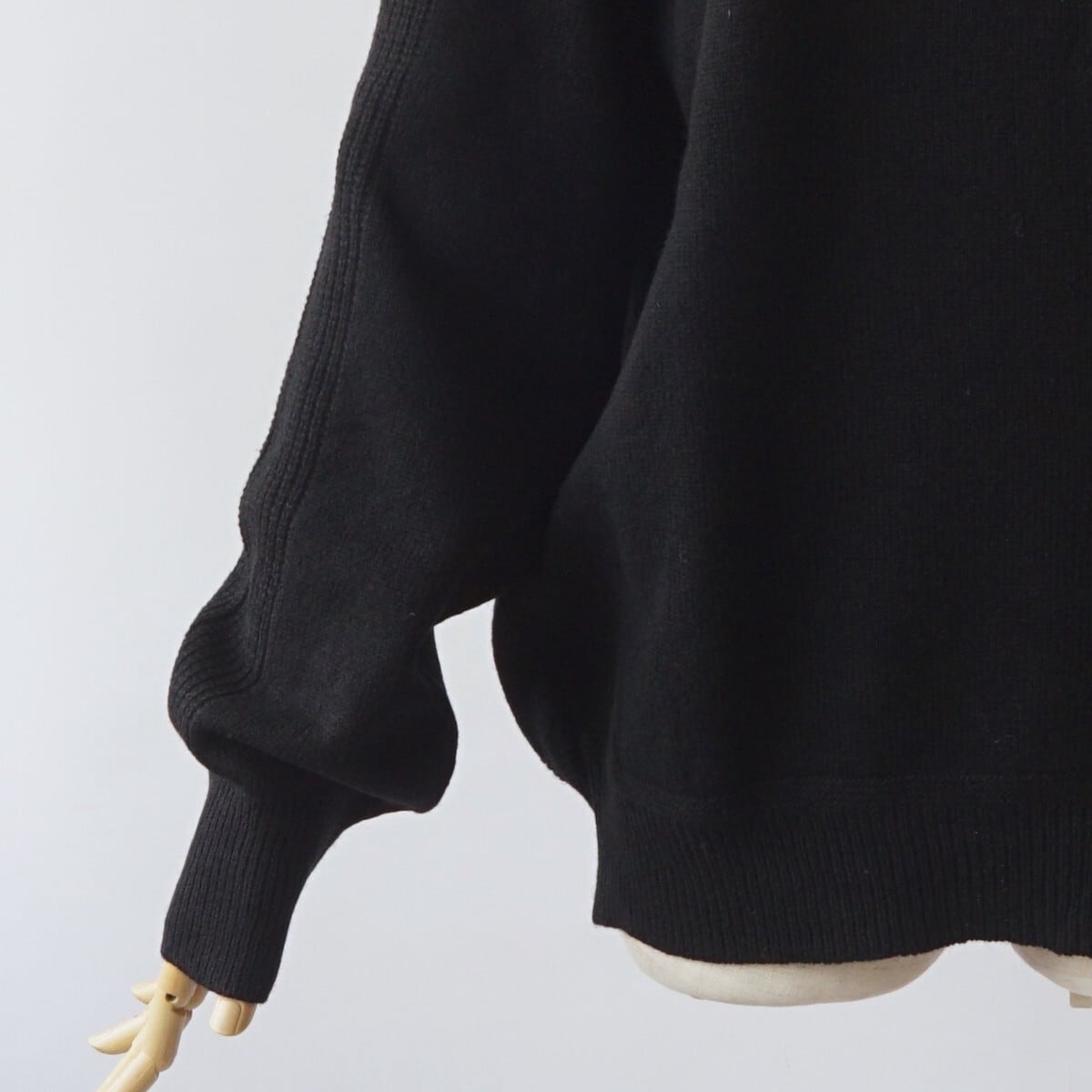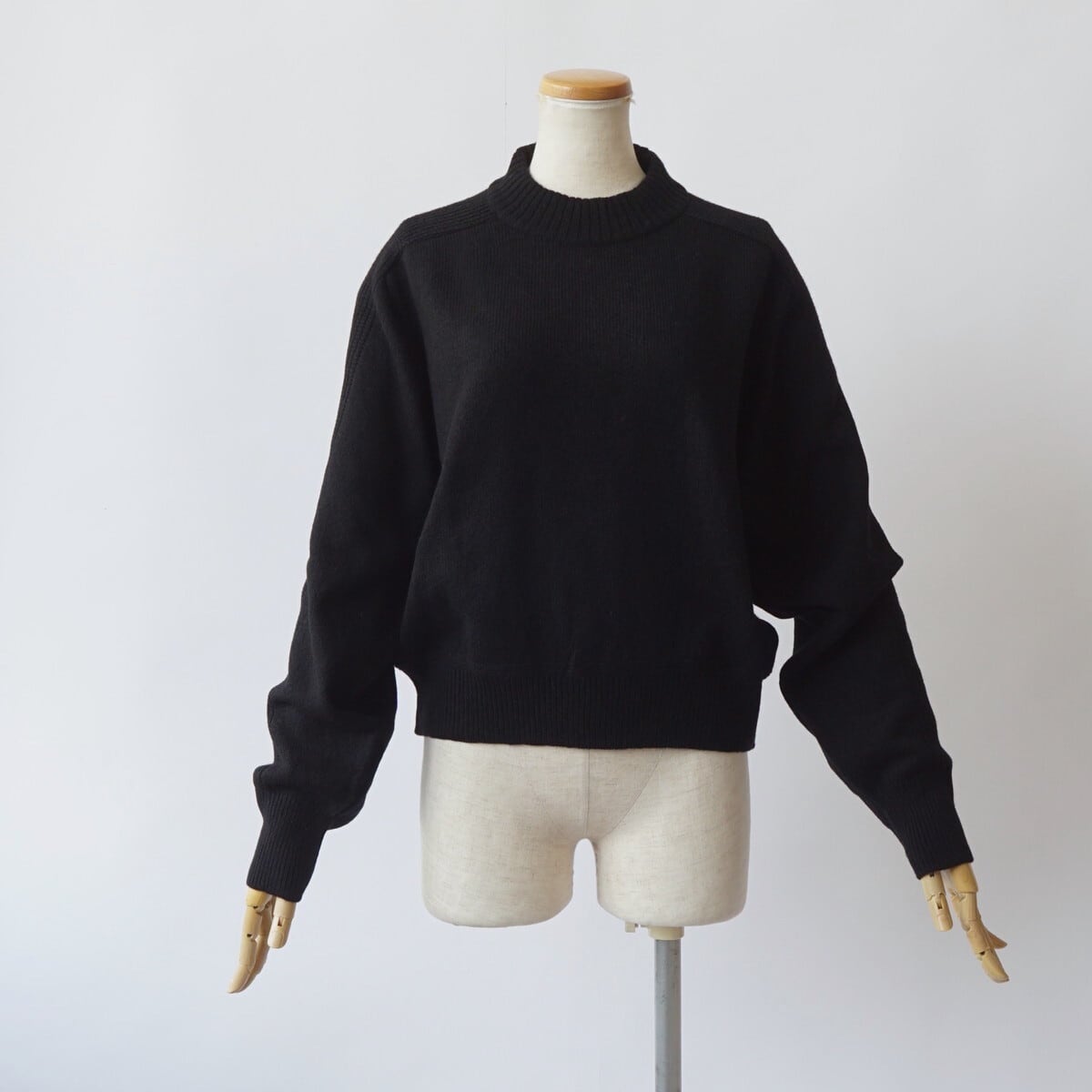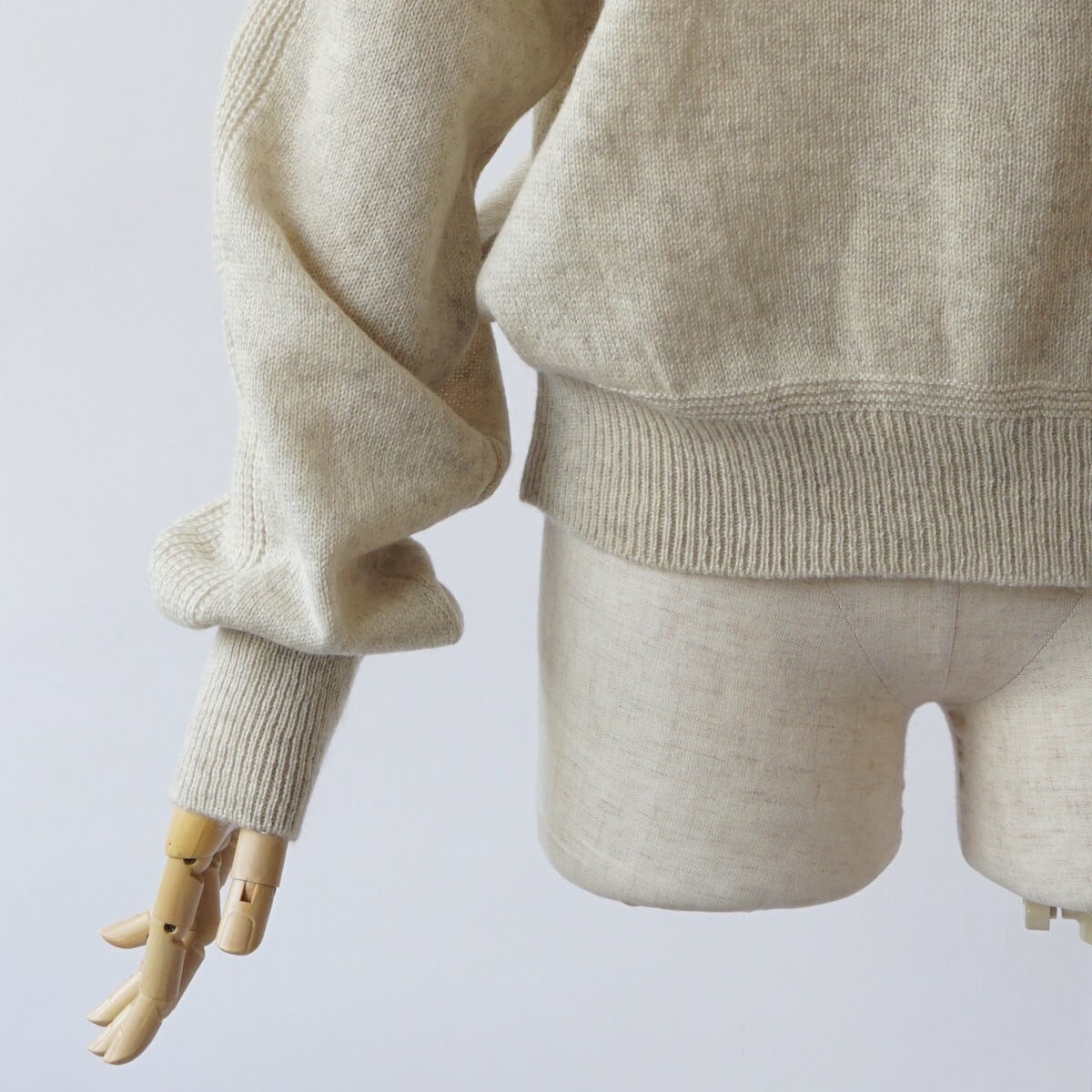 肩から袖山、袖口にかけて片畦編みを施し表情のコントラストを出しています。