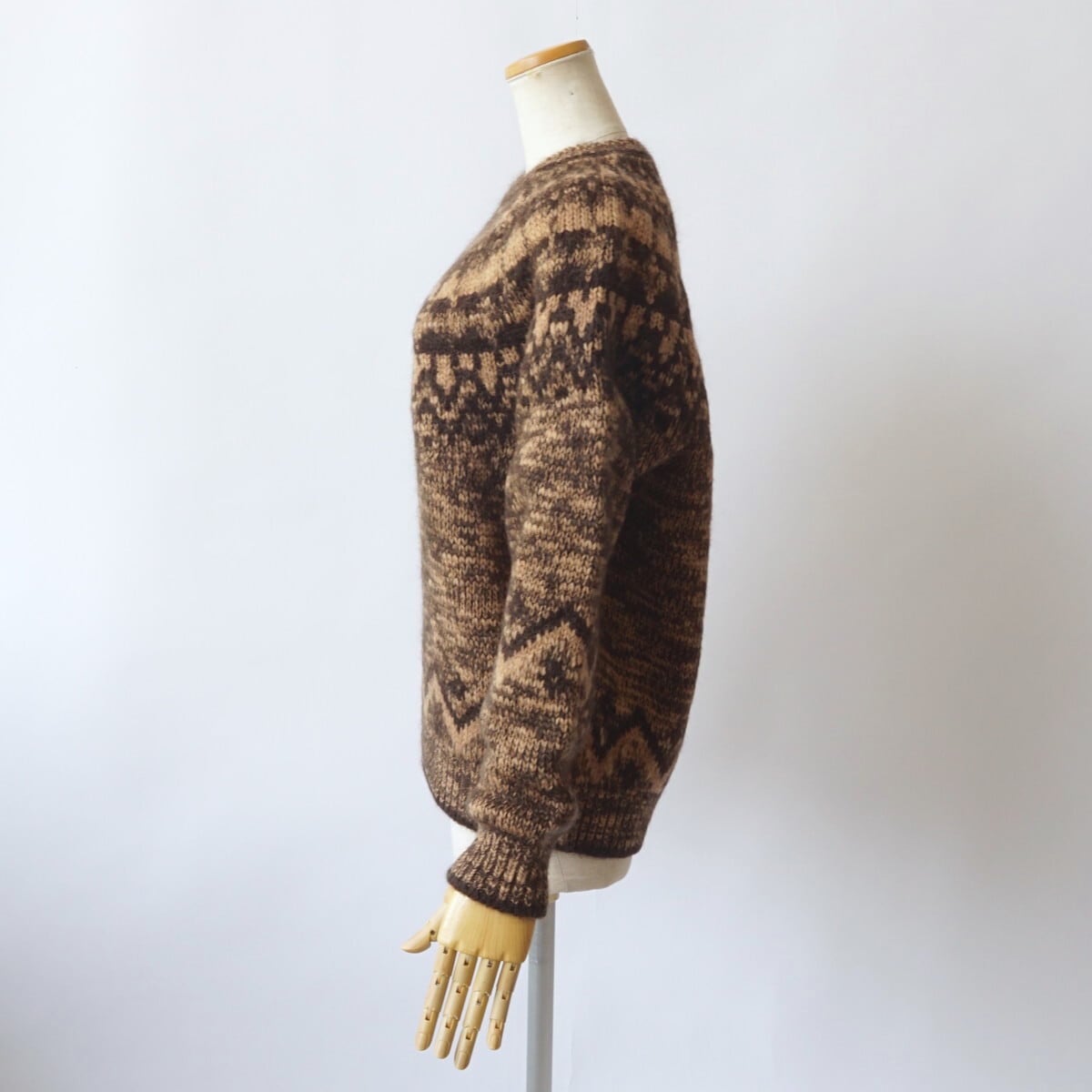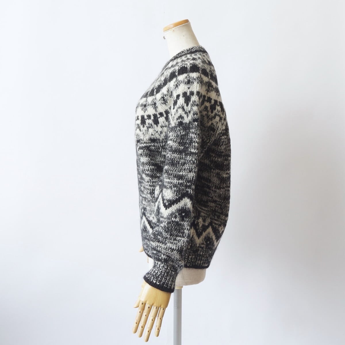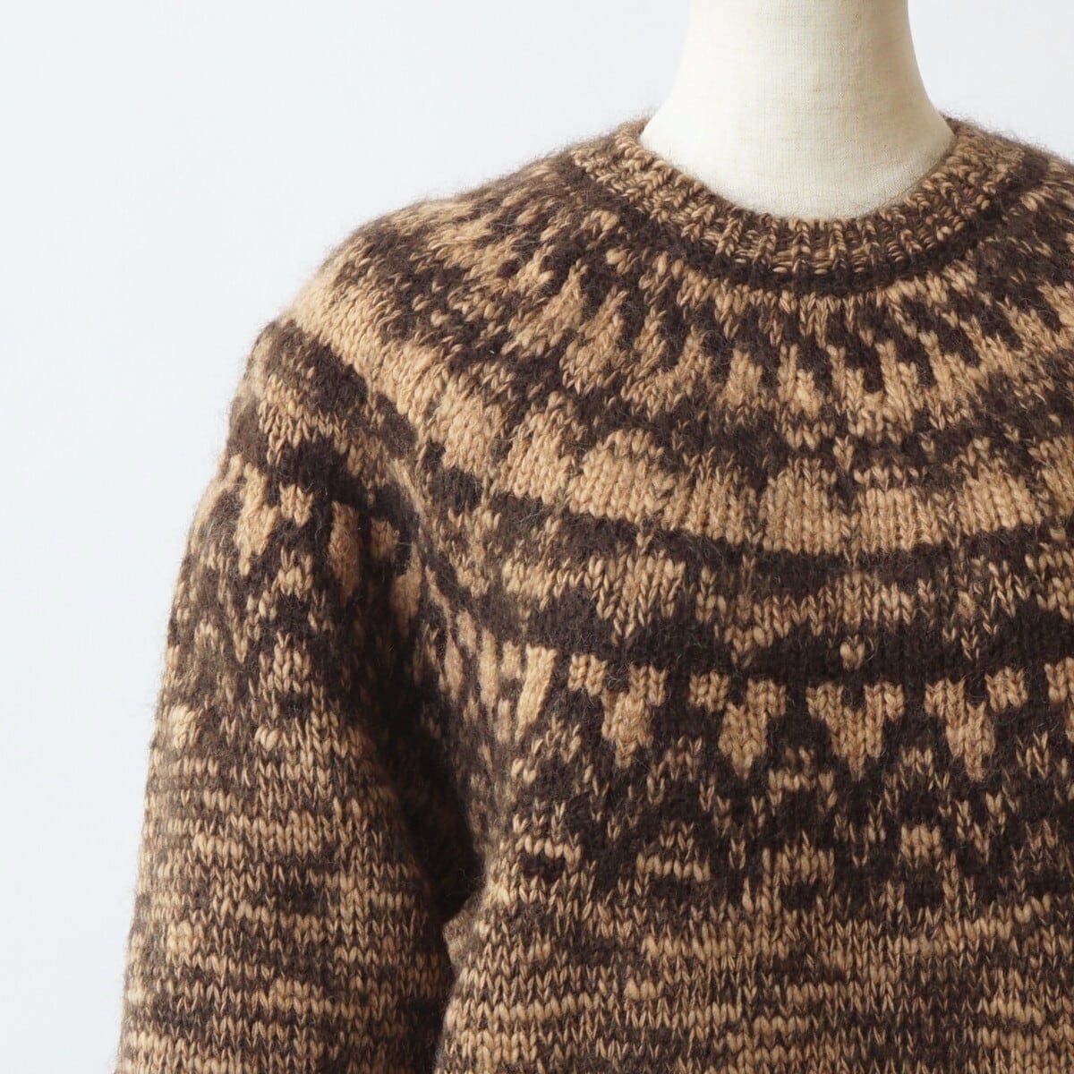 モヘヤ・アルパカ・ウールの起毛感は保ちつつ、スラブヤーンならではのランダムな凹凸感が出ています。