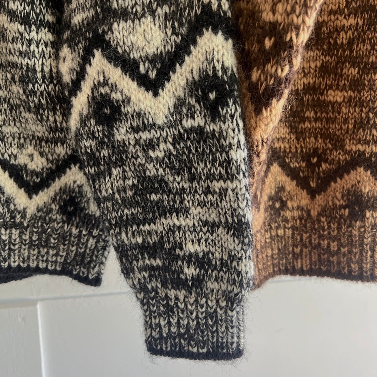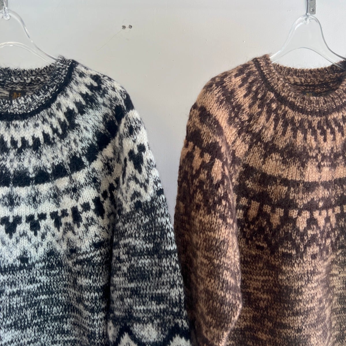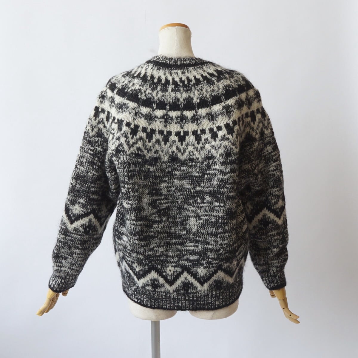モヘヤ・アルパカ・ウールの起毛感は保ちつつ、スラブヤーンならではのランダムな凹凸感が出ています。
