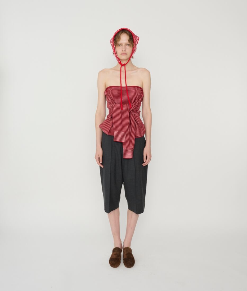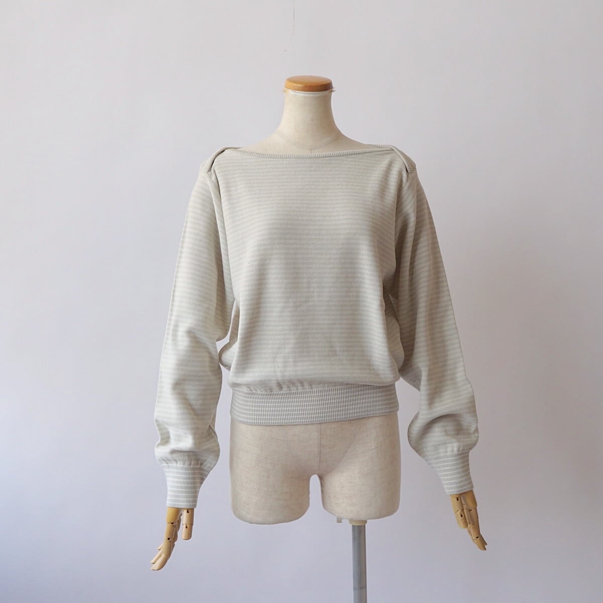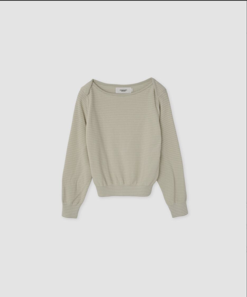 ボートネックの開きが広いので、べアのようにアレンジして着ることもできます。