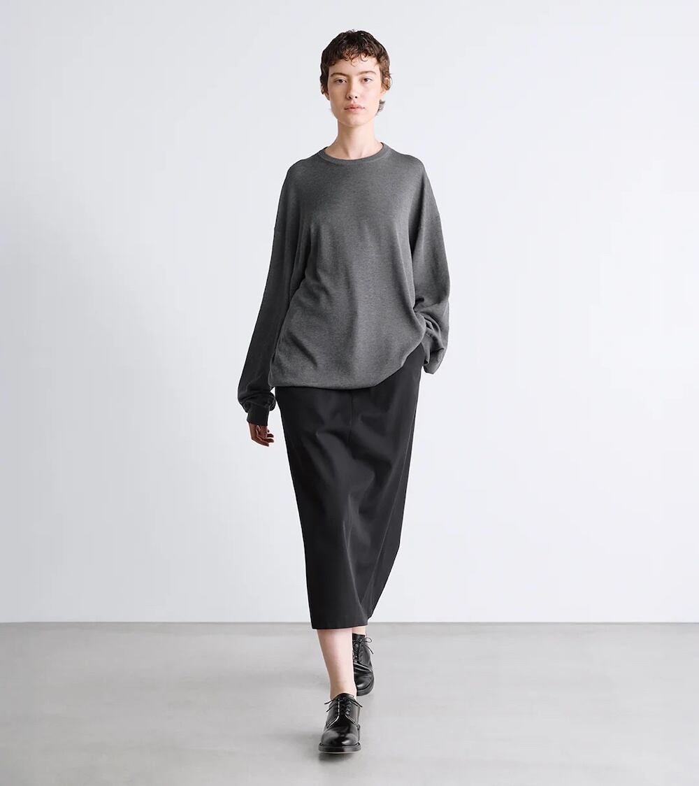 マスキュリンな佇まいを演出するツイルスカート。