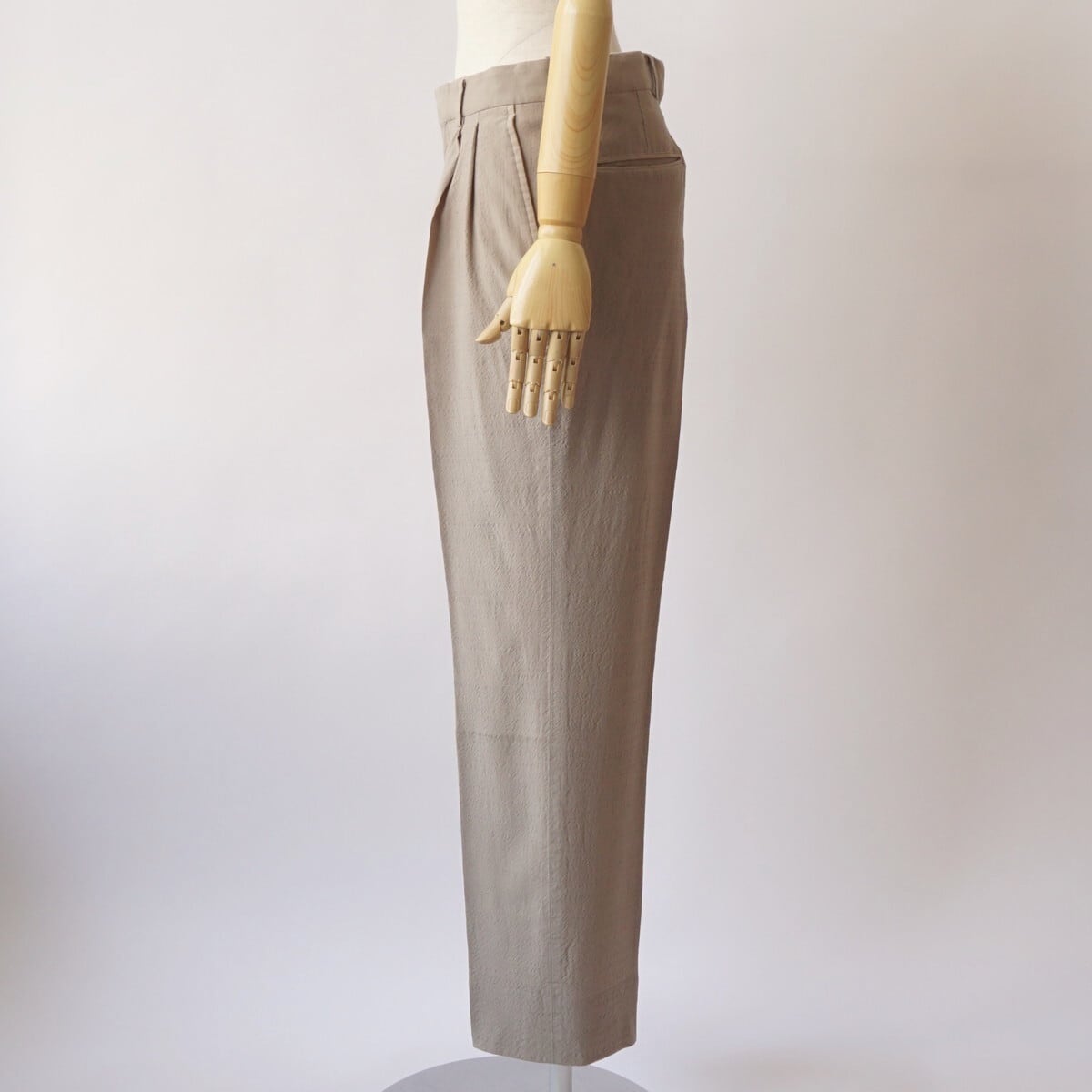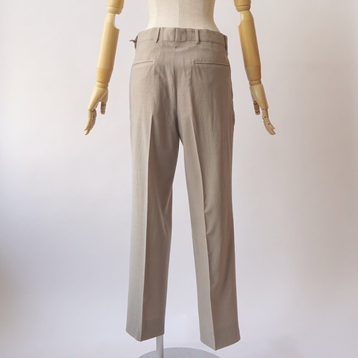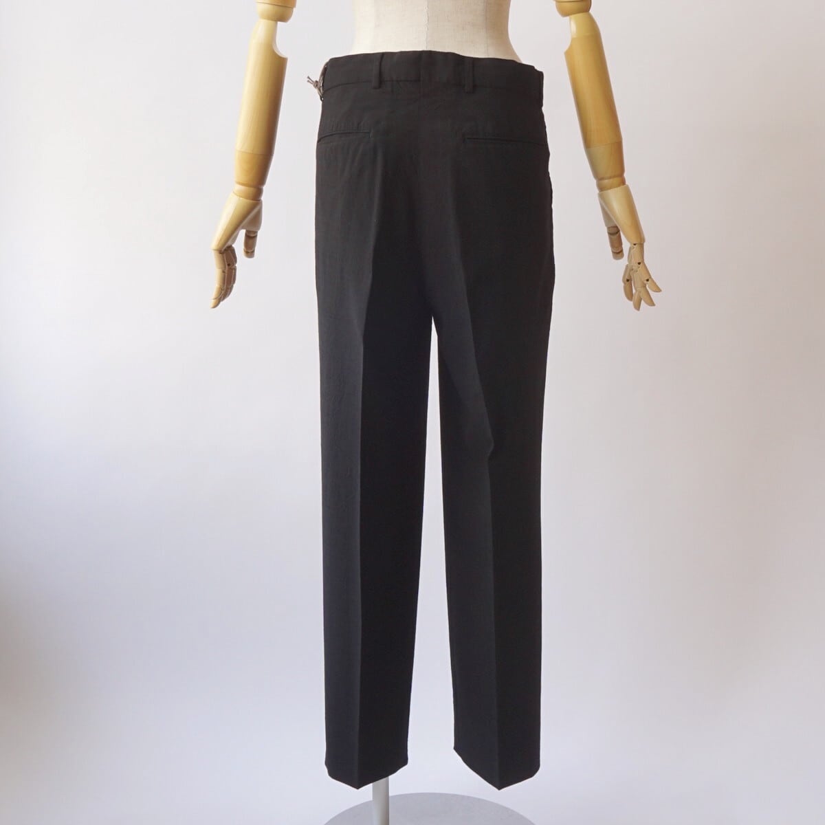 ウールトロピカルのさらっと軽やかな生地感と柔らストレッチ性を感じるで楽な穿き心地、きれいな作りながらラフに夏まで着用できるHERILLらしいトラウザーです。