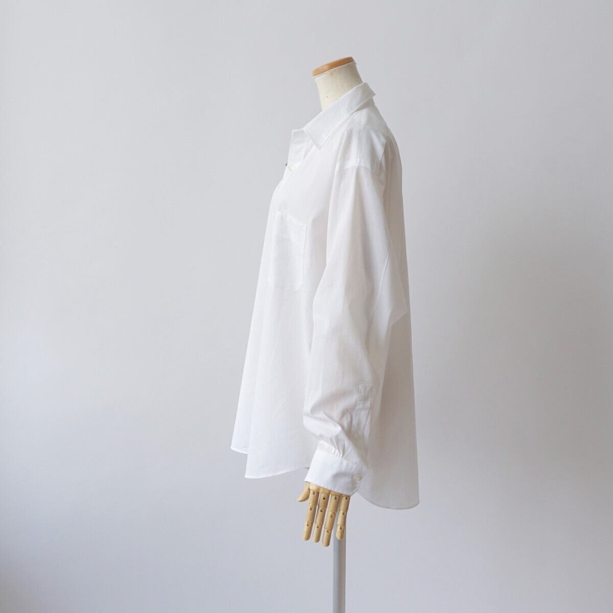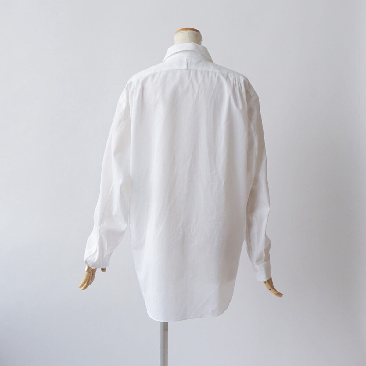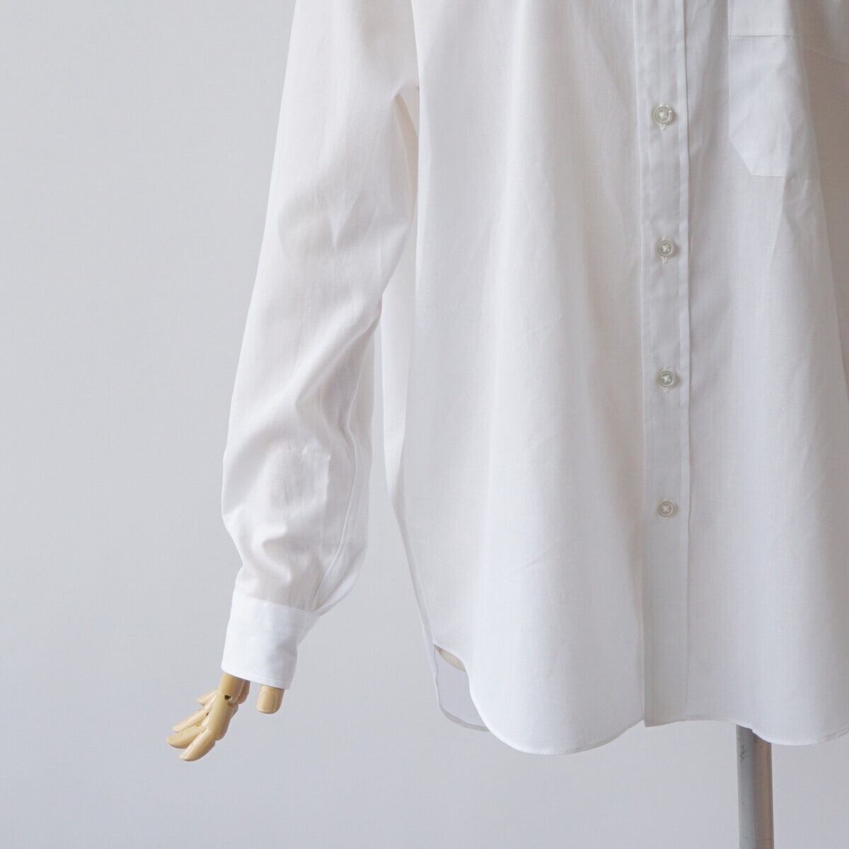 また袖を2枚袖にすることで1枚袖のシャツより、着用やハンガーに掛けた際、少し立体的に見えるように作っています。