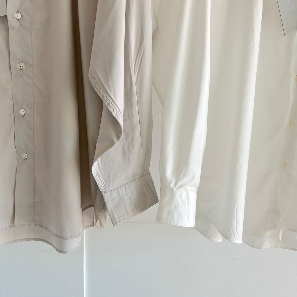 デザインモチーフは、ドレスとワークのディテールが入り混じる60年代のアメリカのバンドカラーシャツからオマージュ。