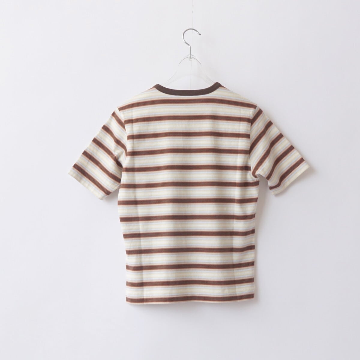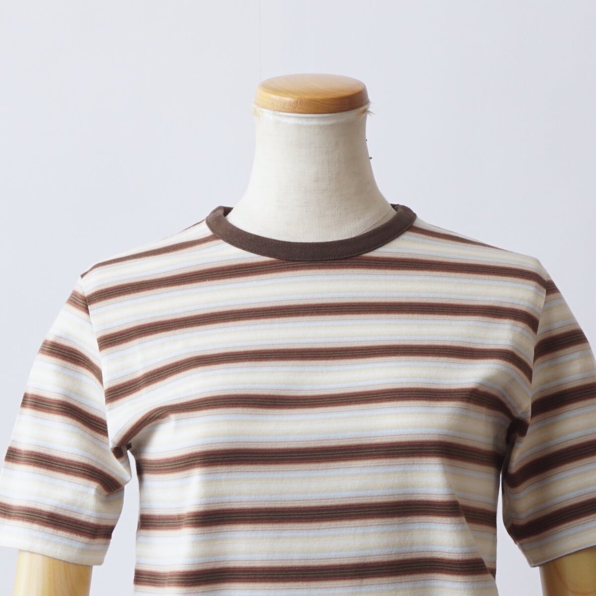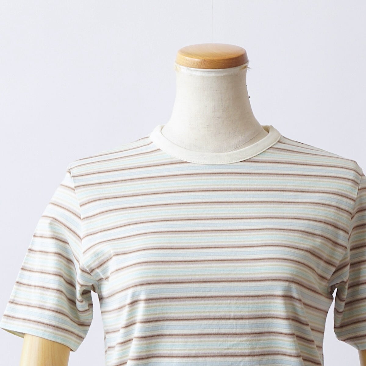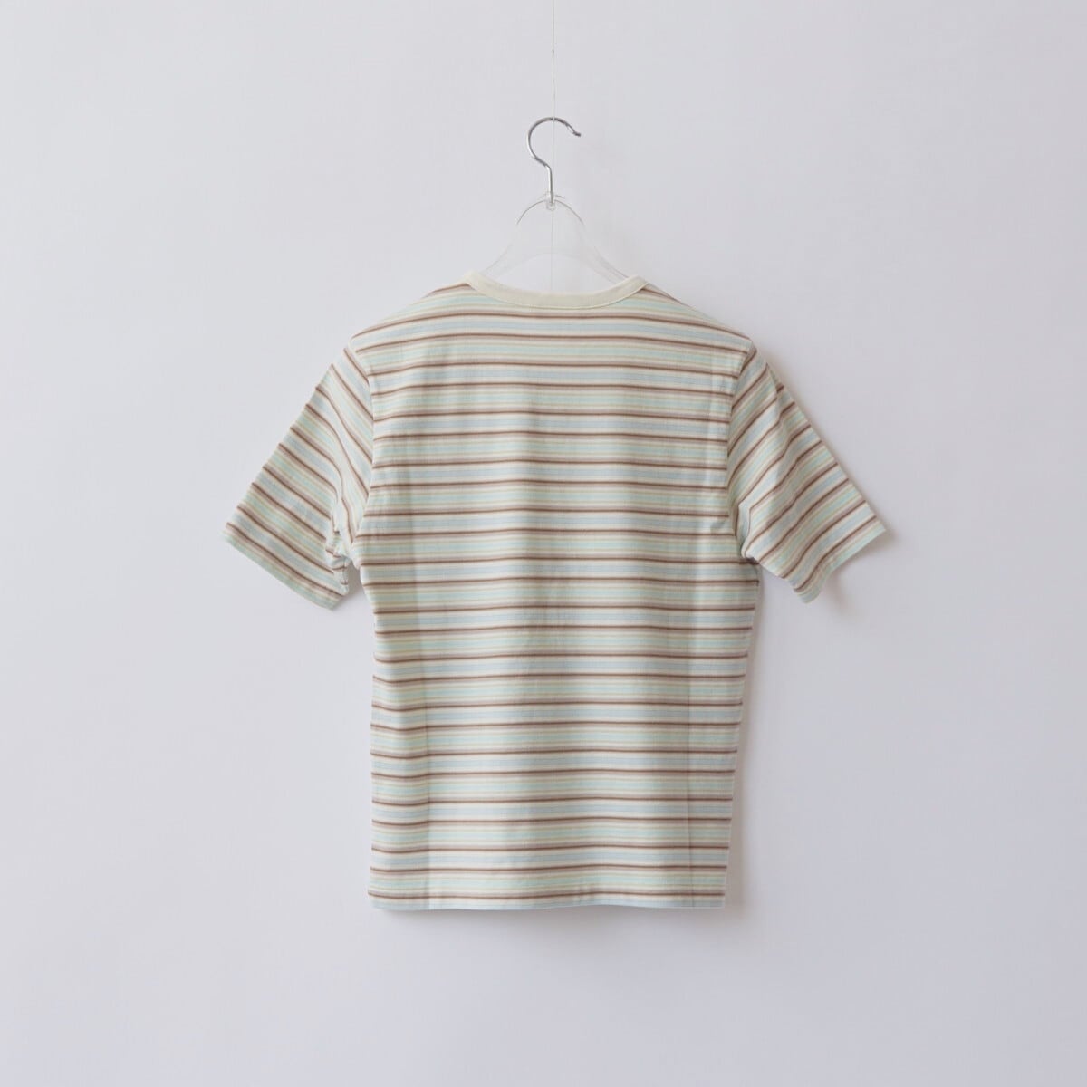 ハイゲージの編み機を使用し、23色もの糸を巧みに組み合わせて編み上げたグラデーションボーダーの天竺素材です。