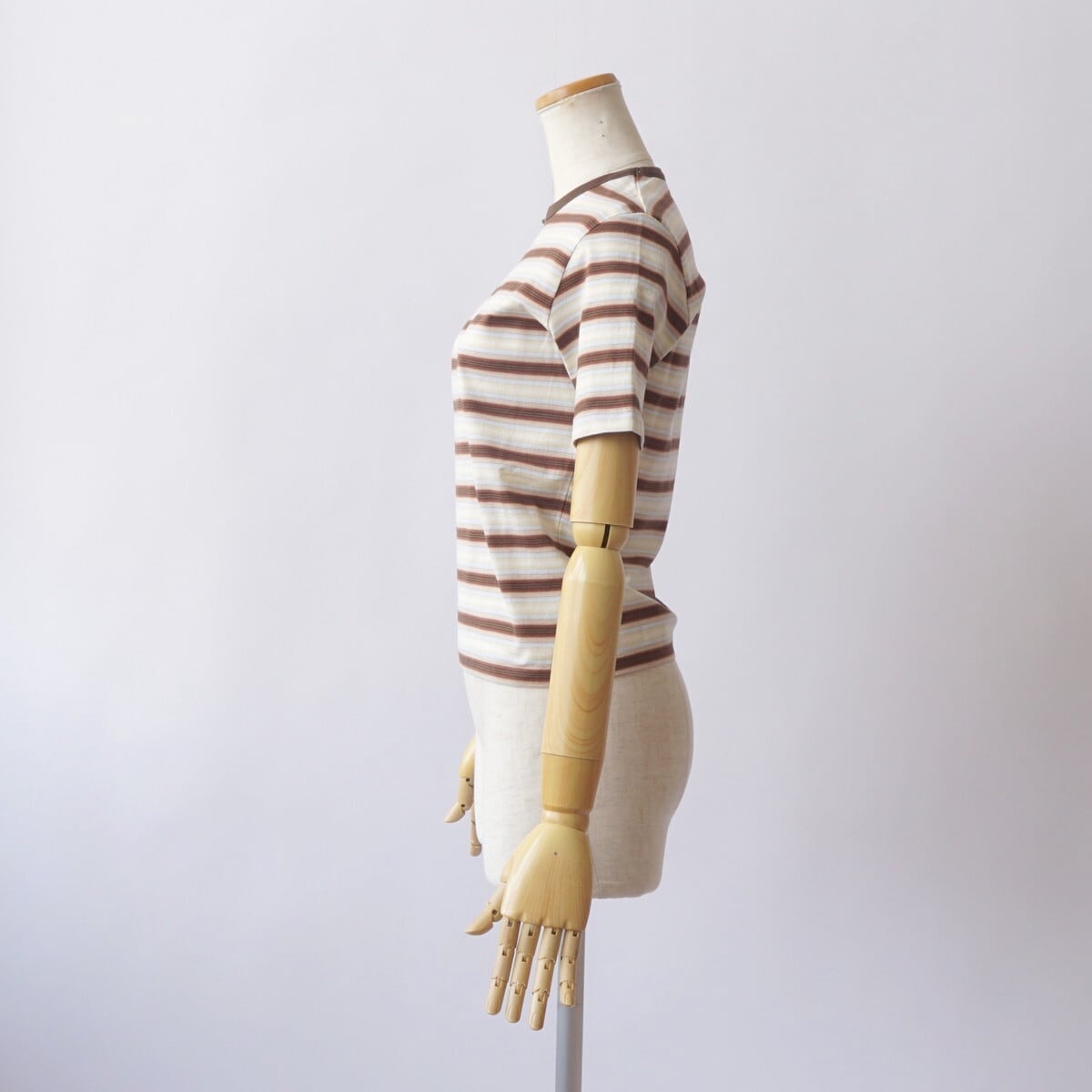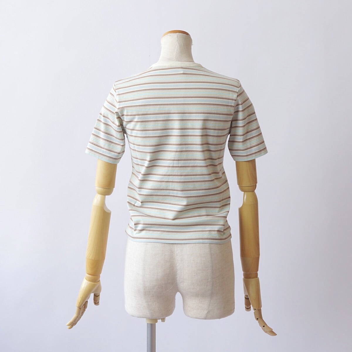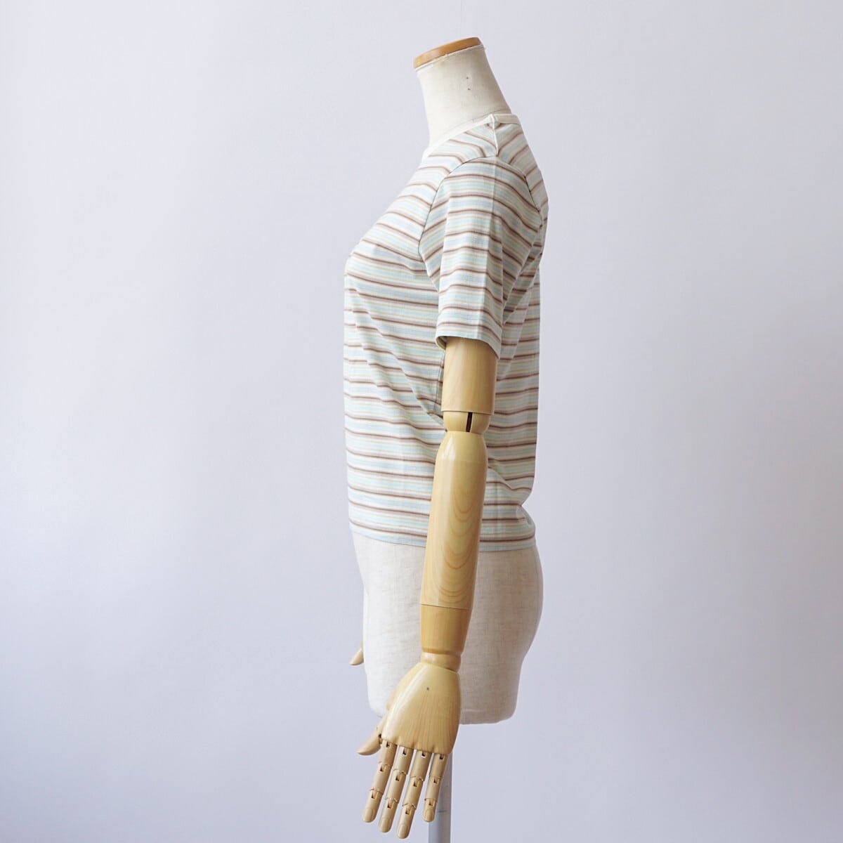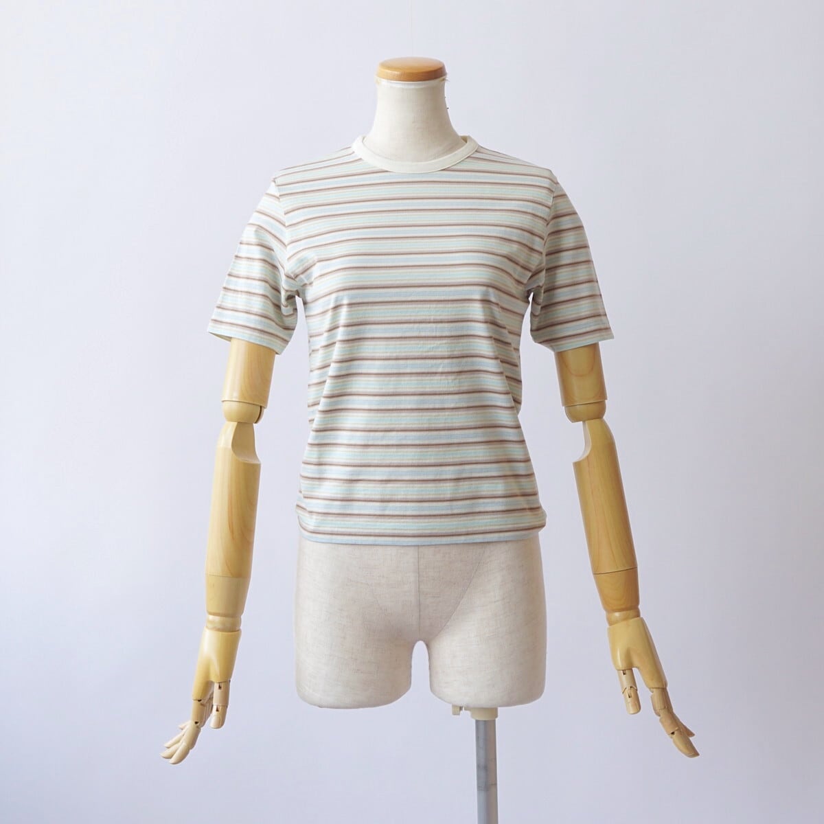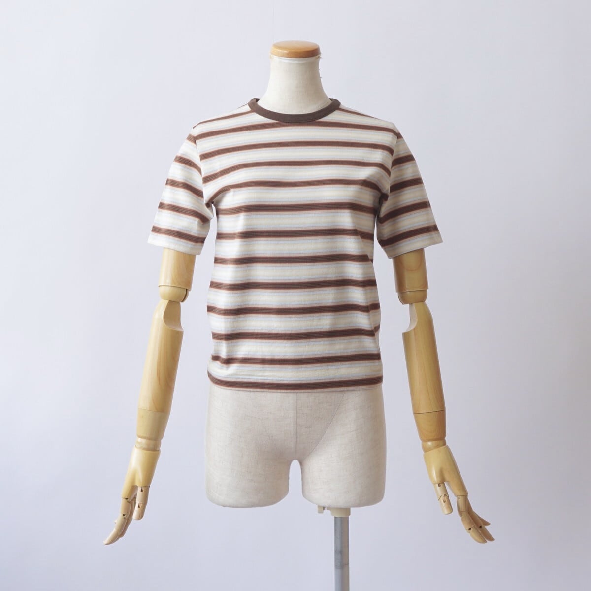 ハイゲージの編み機を使用し、23色もの糸を巧みに組み合わせて編み上げたグラデーションボーダーの天竺素材です。