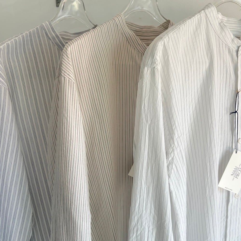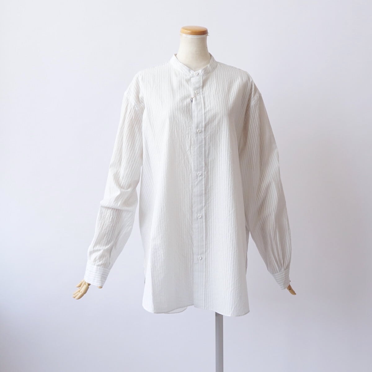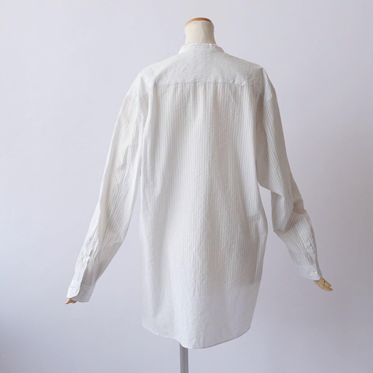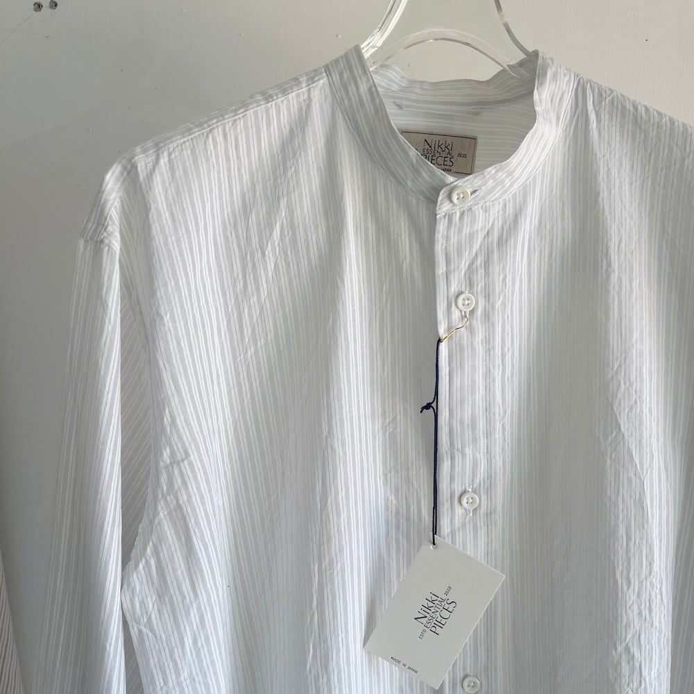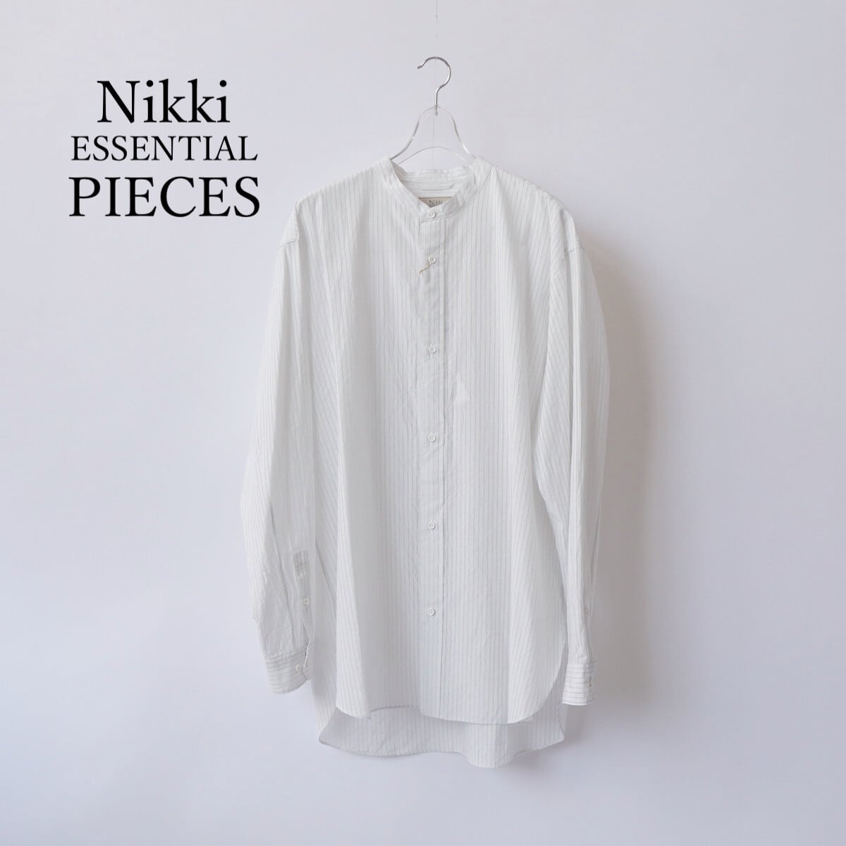 Nikki ESSENTIAL PIECES/ニッキエッセンシャルピーシーズ・Co/ Si Sheer Stripe Band Collor Shirt (UNI)