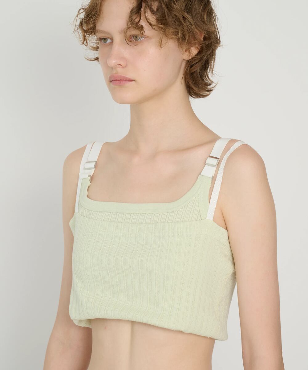 裾の肩紐をさらにかけてショート丈のタンクトップのようにも着用できます。