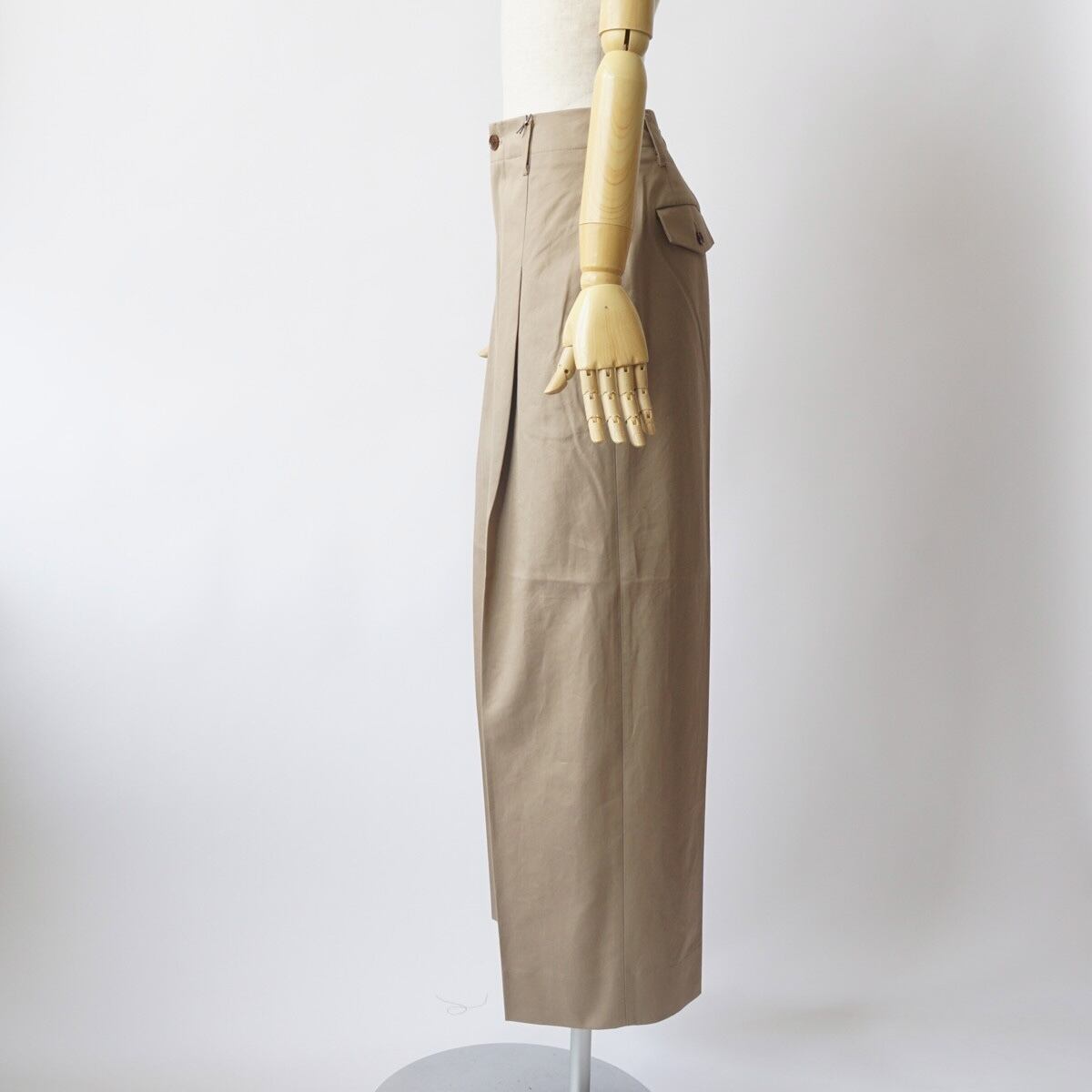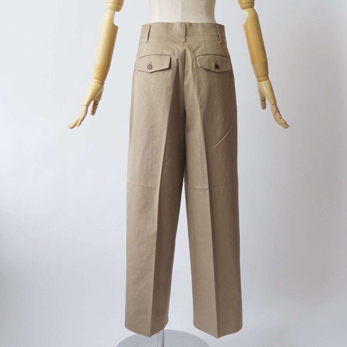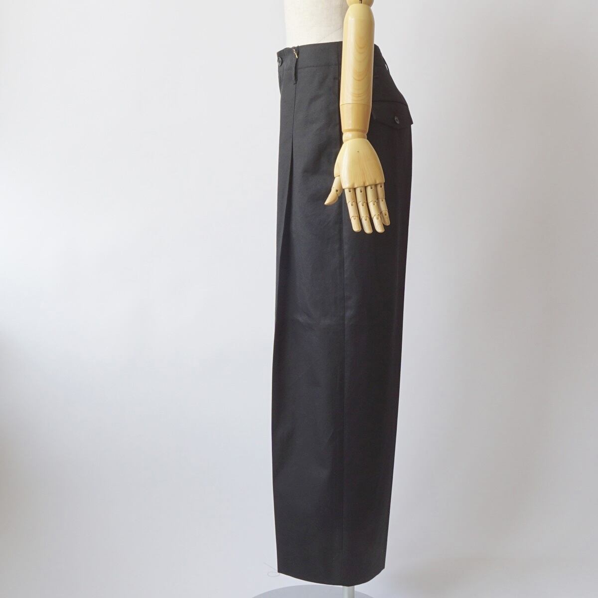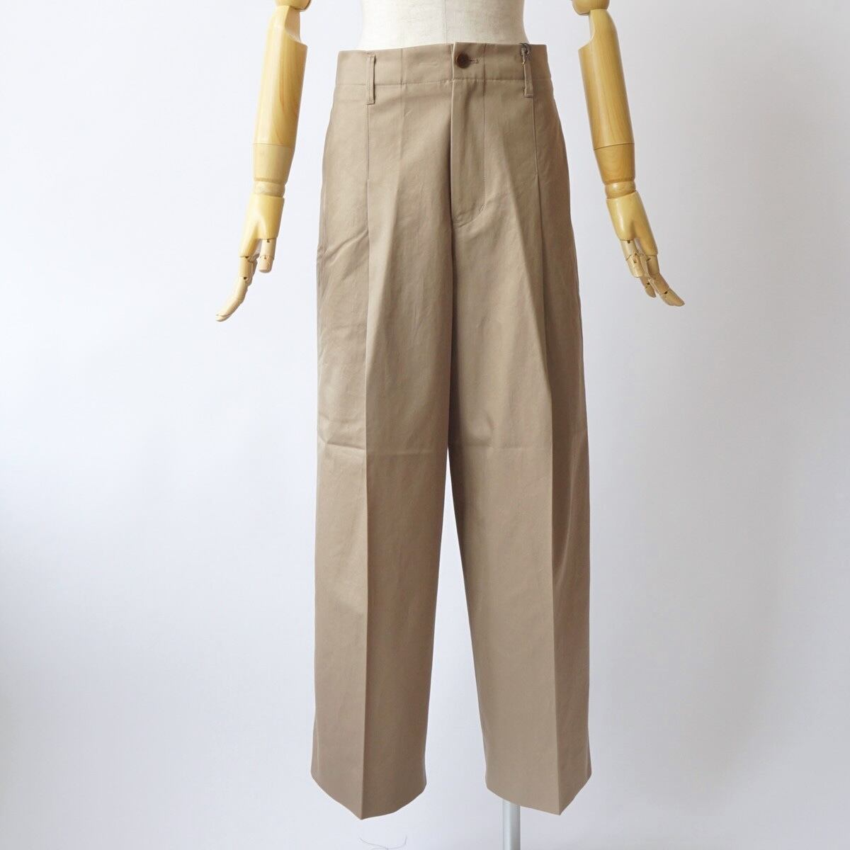 深めのワンタック入りのワイドトラウザー。裾にかけて少しテーパードしているシルエットになります。