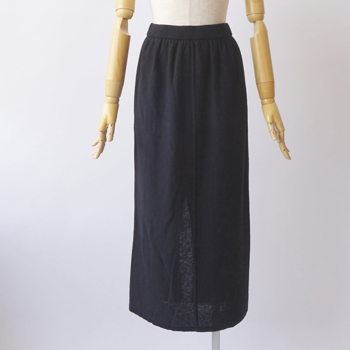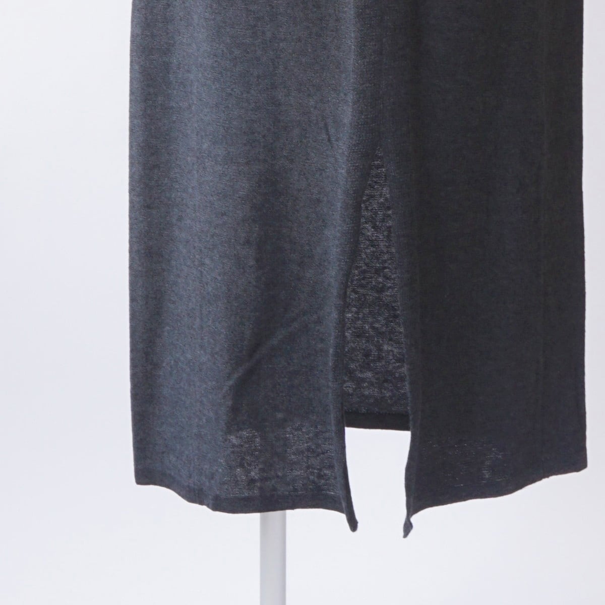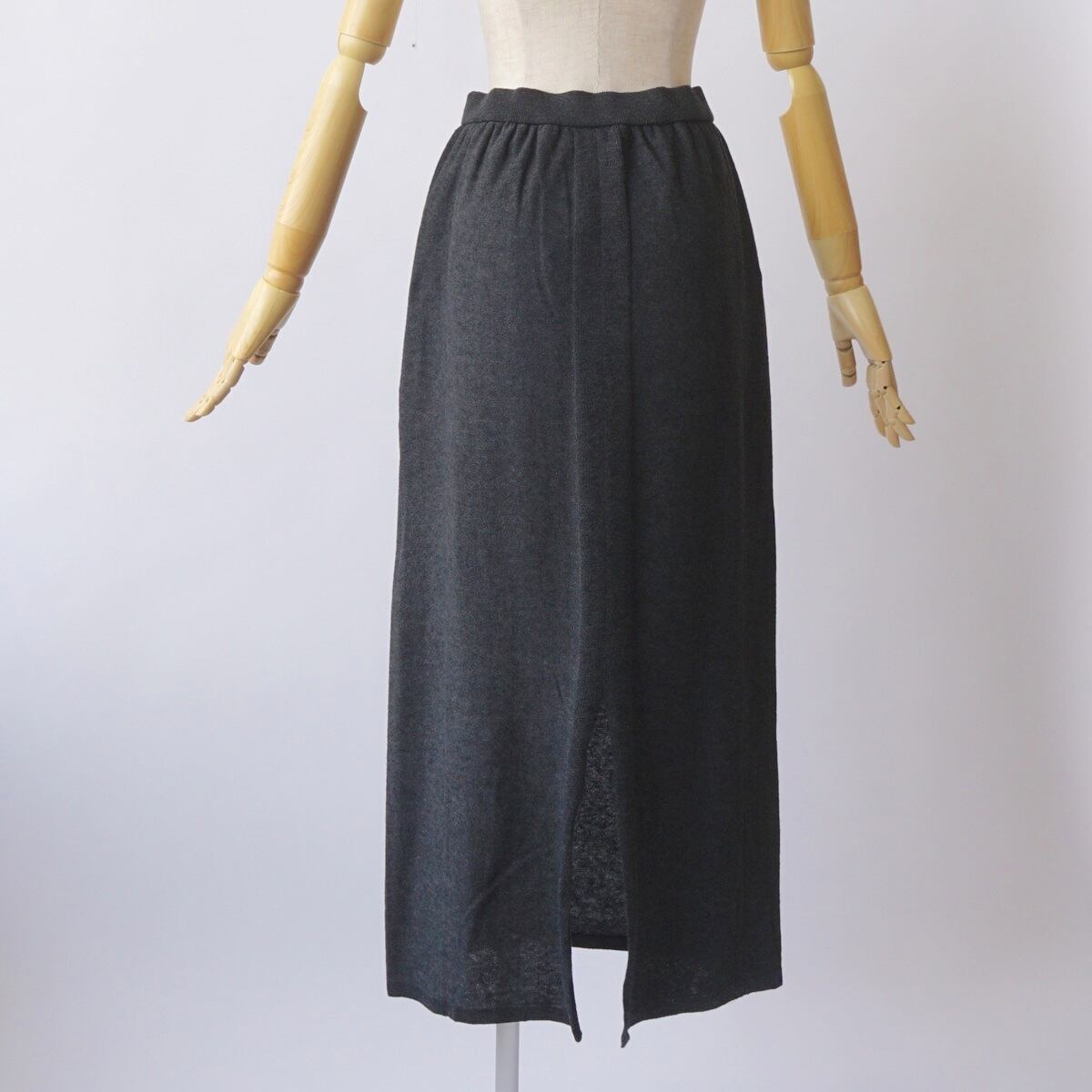 ペンシルシルエットのスカートで後ろ中心にスリットを入れております。