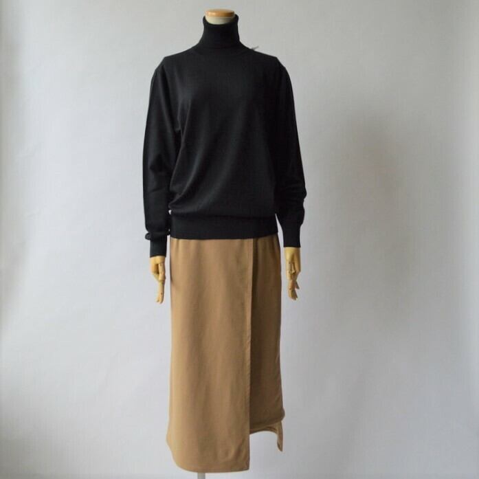 Graphpaperらしいリラックス感のあるサイズの長袖ハイネックニット。