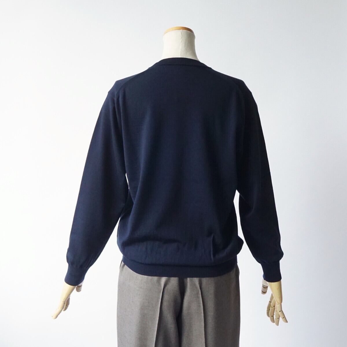 肌着にも採用されるほど柔らかなスーパーエクストラファインメリノウールをハイゲージの編み機でしっかり度目を詰めて編み立てました。