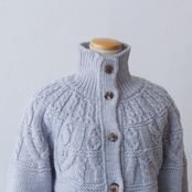 シェットランドウールを手紡ぎのようなニュアンスで紡績したスラブ糸を使用し、BATONERならではの特殊なローゲージ編機で編み立てました。