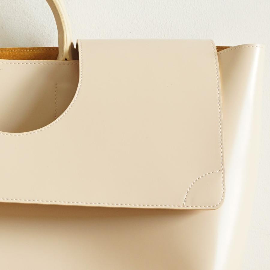バッグ本体を一本縫製により組み立てたミニマム設計、それを可能にしたのは素材の持つポテンシャル。
